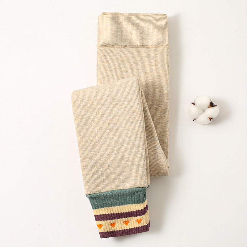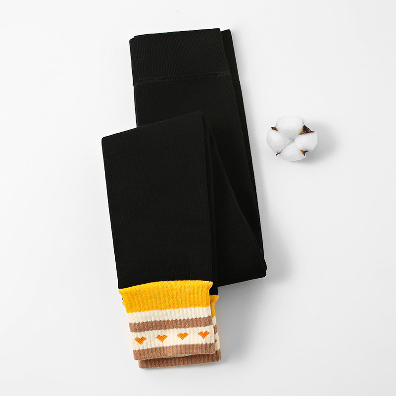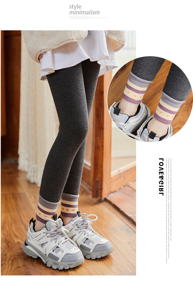 厂家批发冬季跨境新品女童竖条加绒九分裤脚口爱心加厚儿童打底裤