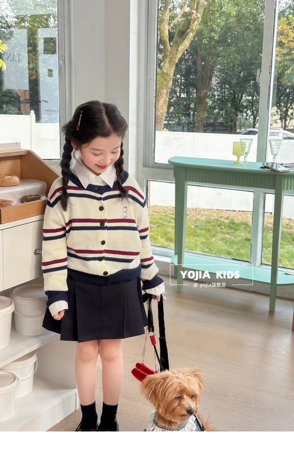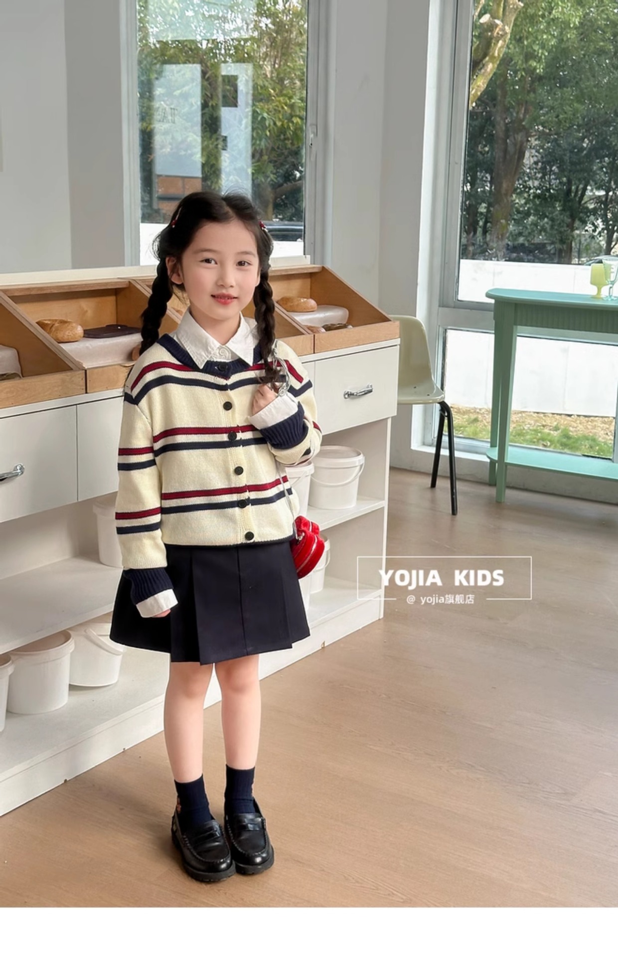 YOJIA 여자 치마 봄과 여름 2025 새로운 대학 스타일 학생 주름 치마 어린이 치마 봄