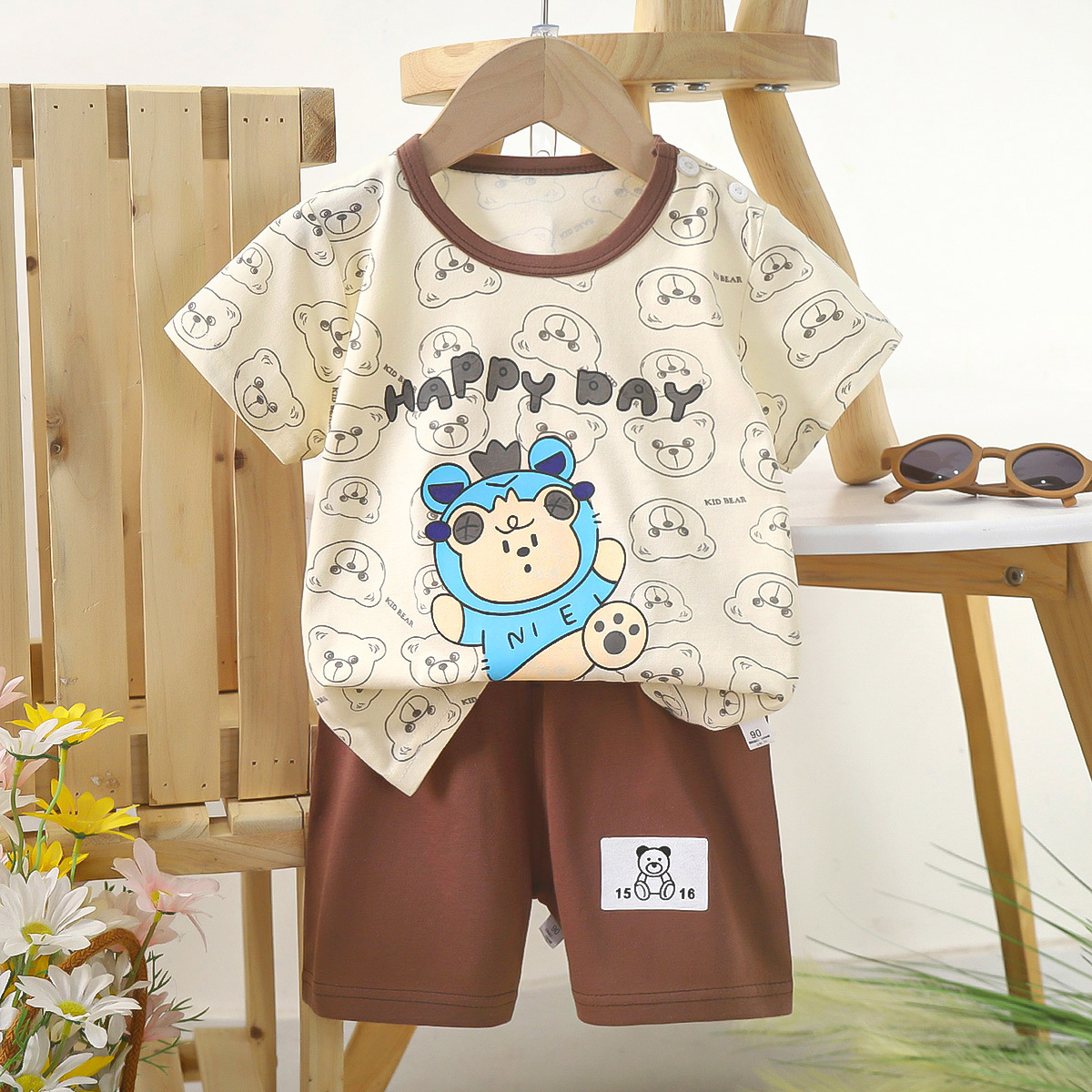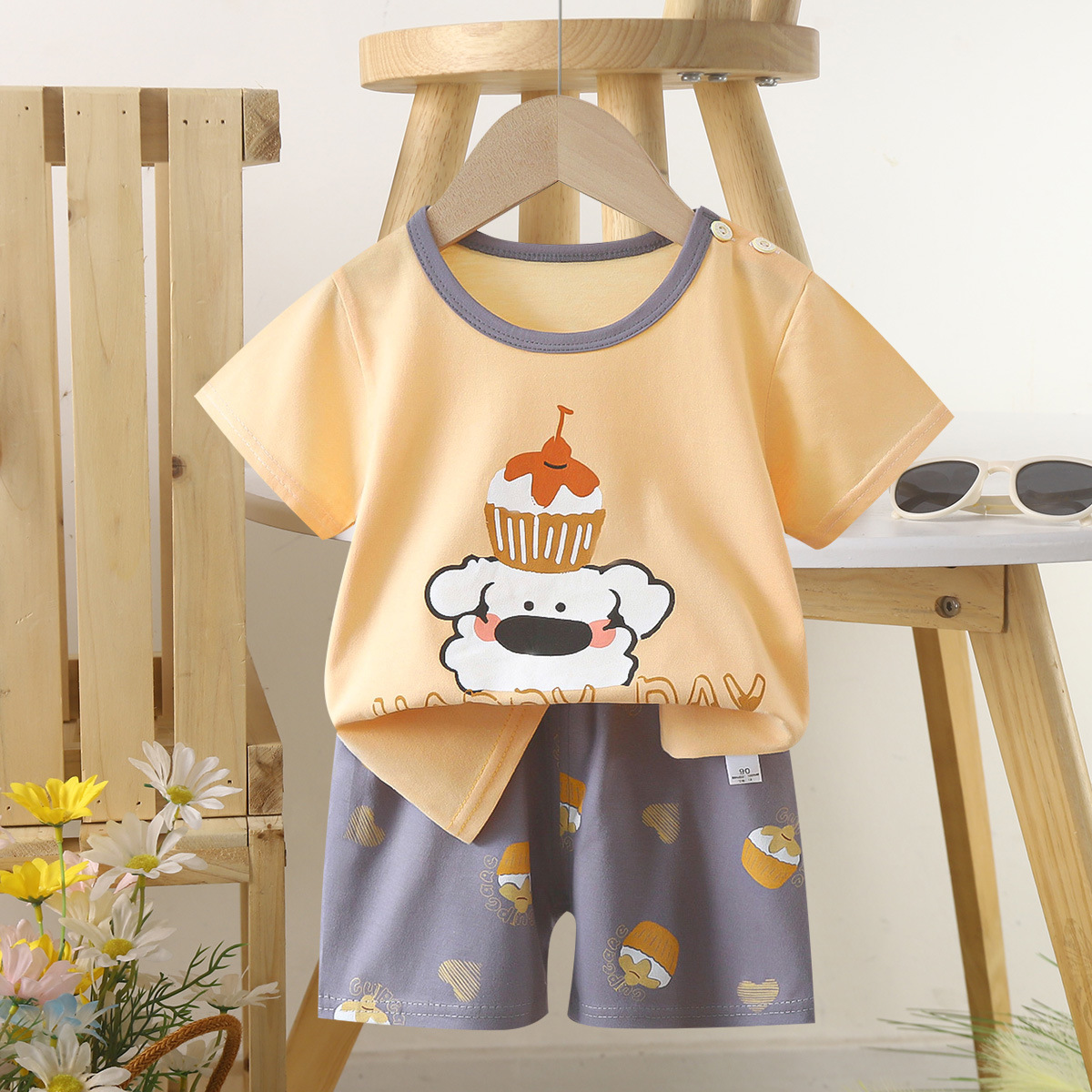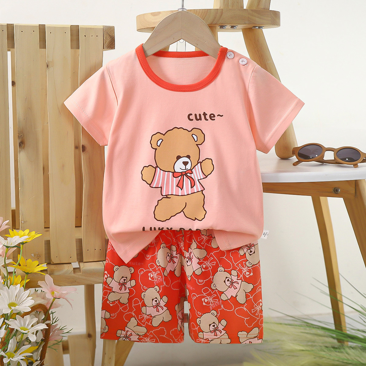 여름 어린이 반팔 세트 코튼 보이즈 운동복 아기 소녀의 만화 여름 의상 반바지 투피스 세트스토어 가기