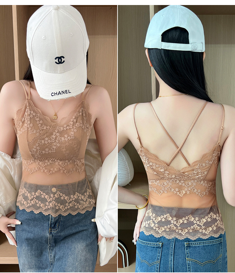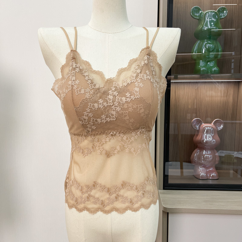 레이스 아름다운 백 카미 솔 여성의 여름 내복 외부 착용 가슴 패드 유럽과 미국의 복고풍 간단한 유행 편안한스토어 가기