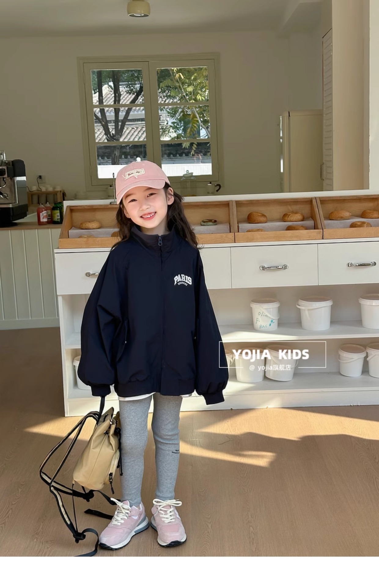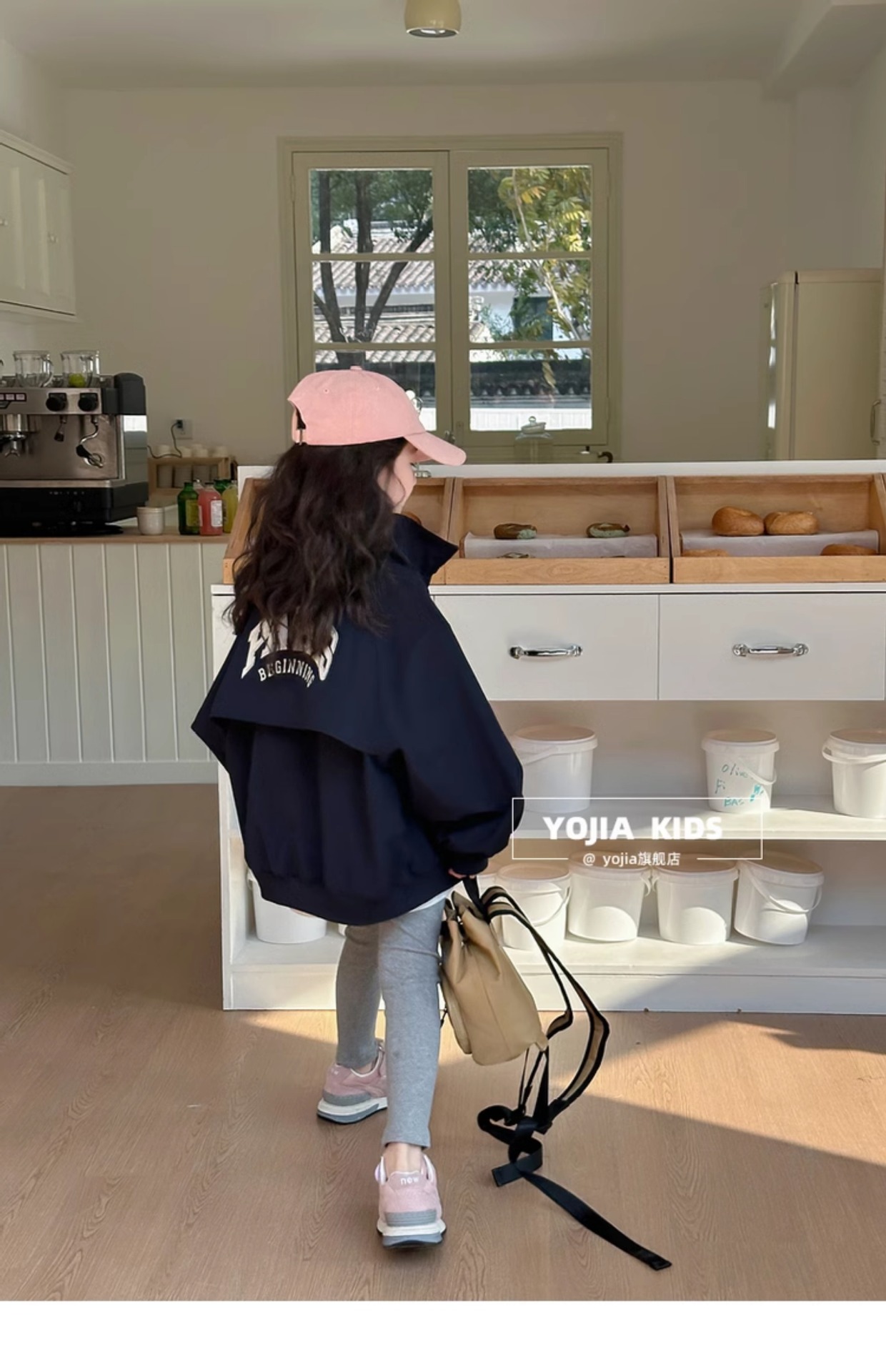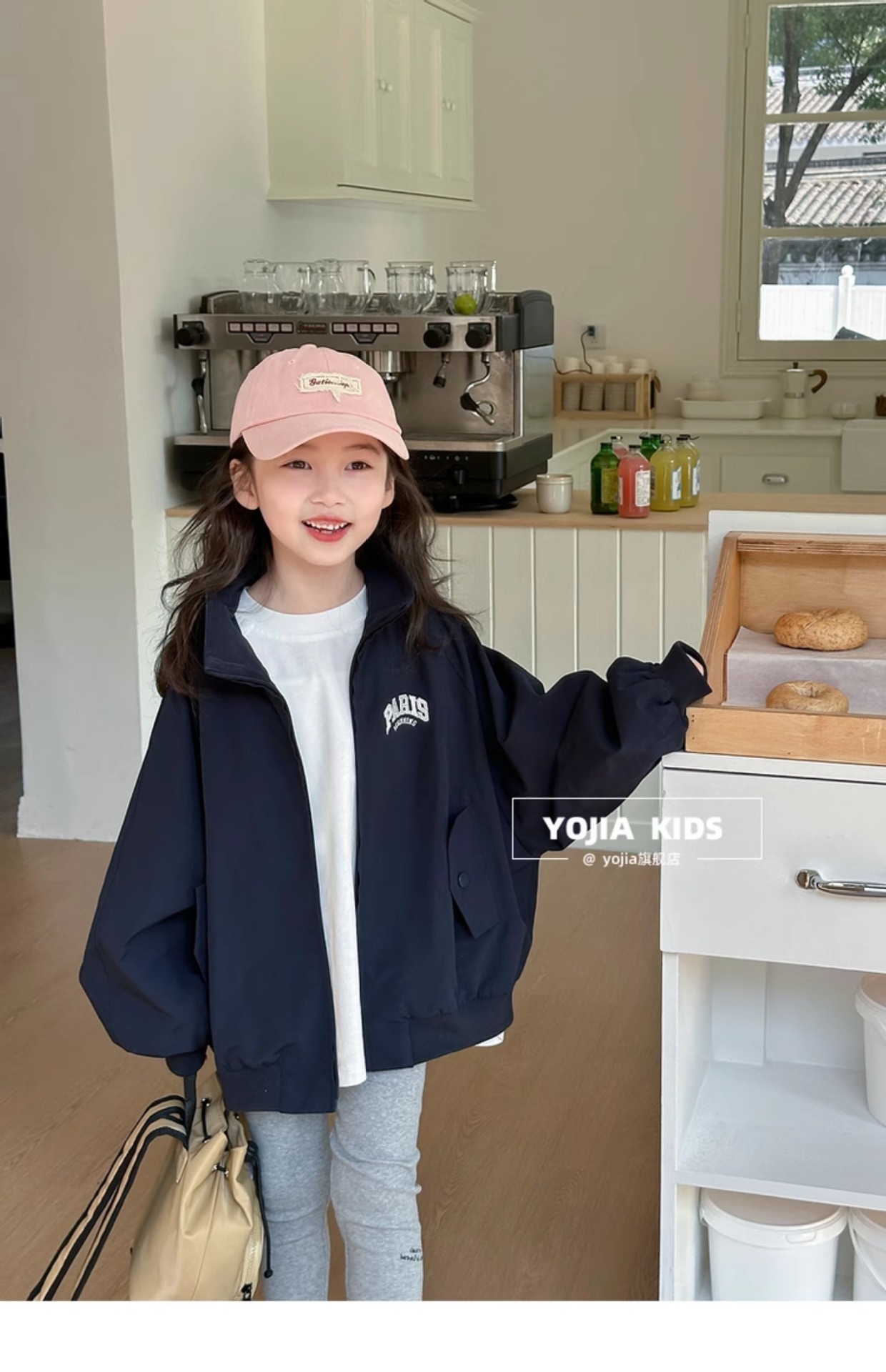 YOJIA Girls 'Coat 봄과 가을 2025 새로운 서양식 중대형 어린이 작업 자켓 봄 얇은 어린이 정상스토어 가기
