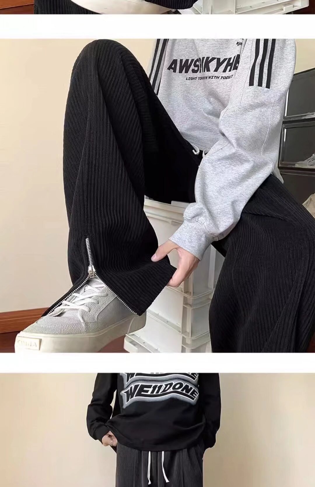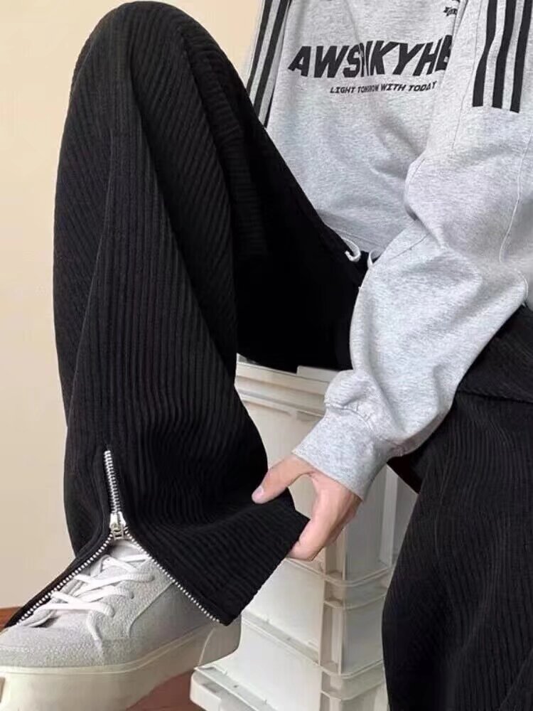 트렌디 브랜드 2024 가을 겨울 트렌디 남성 신작 남성 스트레이트 팬츠 다용도 일본 청소년 캐주얼 트렌디 와이드 팬츠