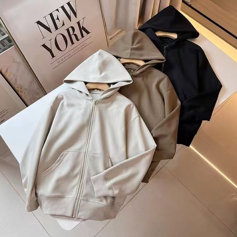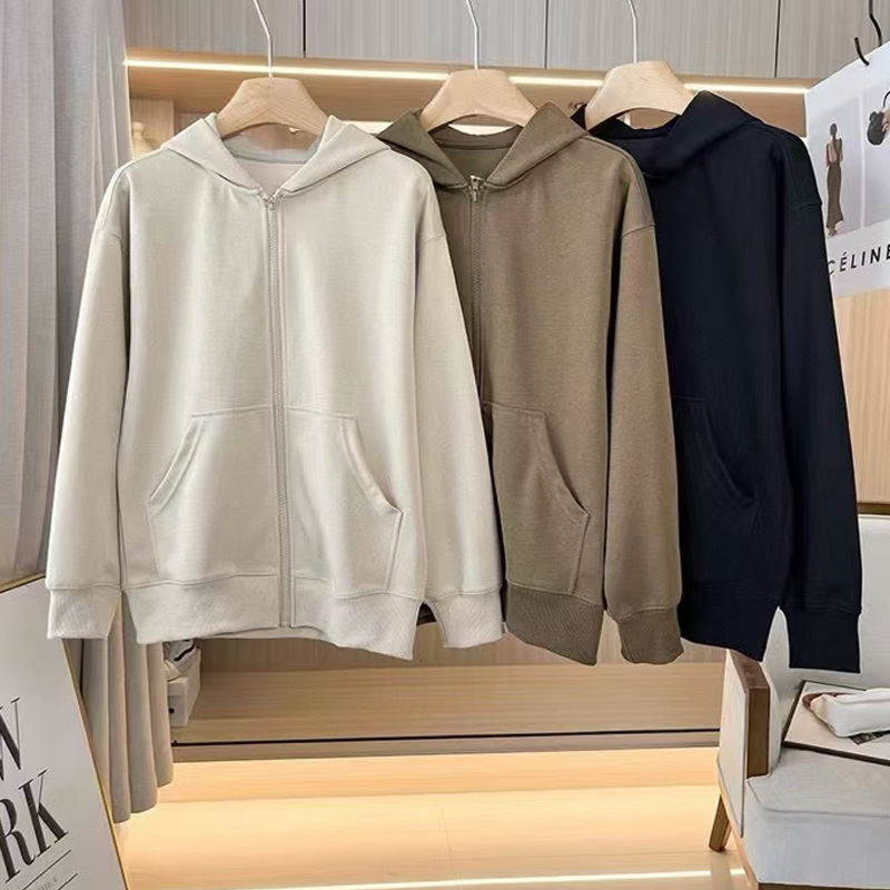 女装快干休闲拉链连帽外套/长袖宽松落肩卫衣24秋季新款E471616스토어 가기