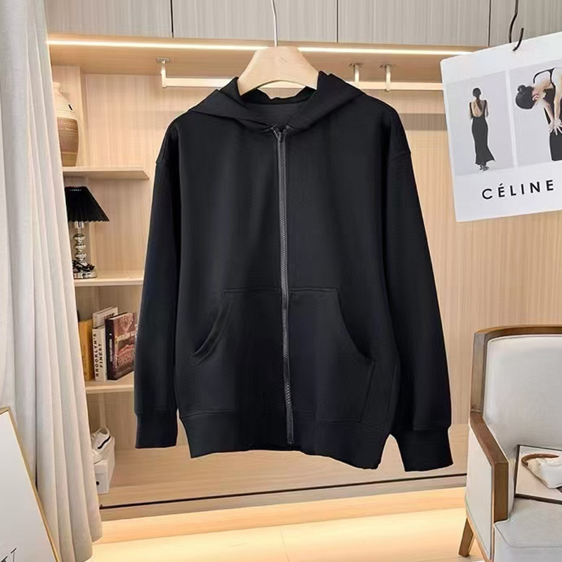 女装快干休闲拉链连帽外套/长袖宽松落肩卫衣24秋季新款E471616