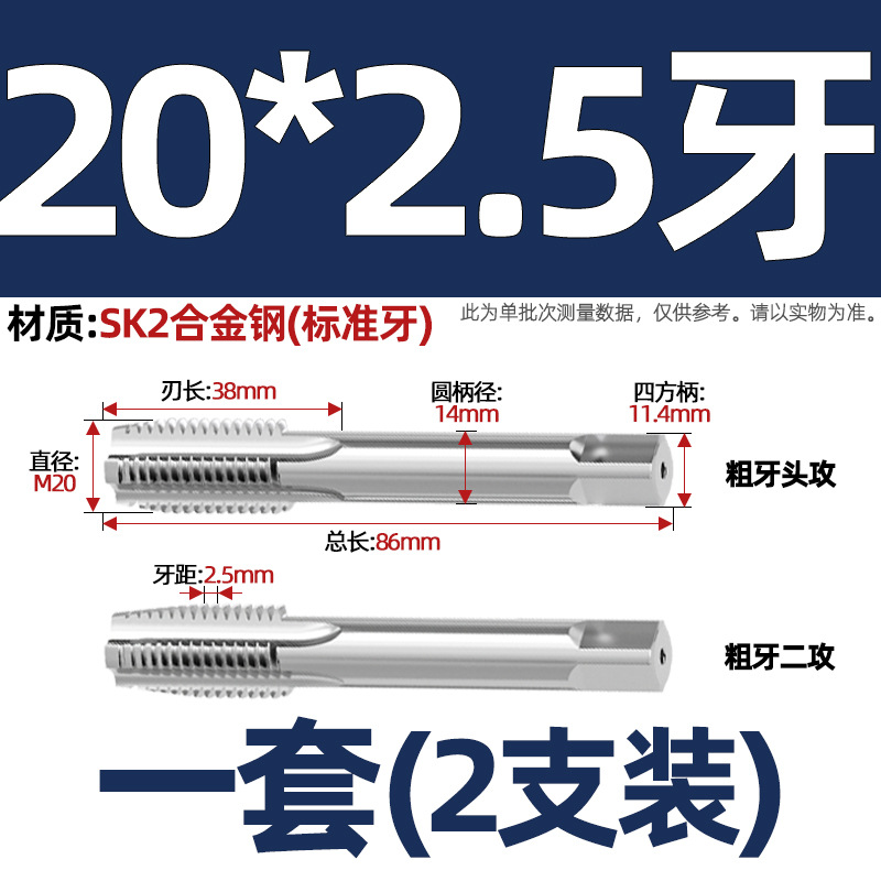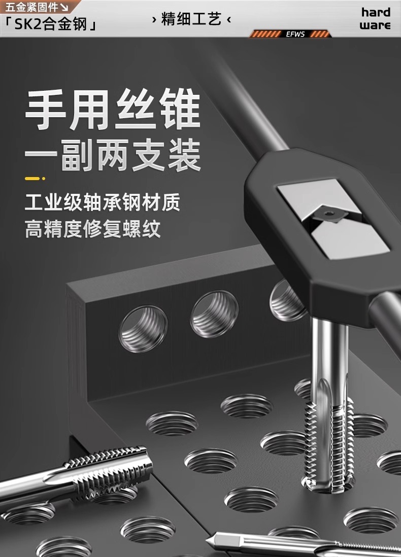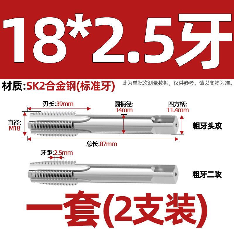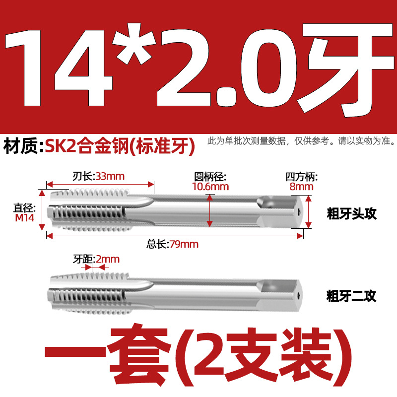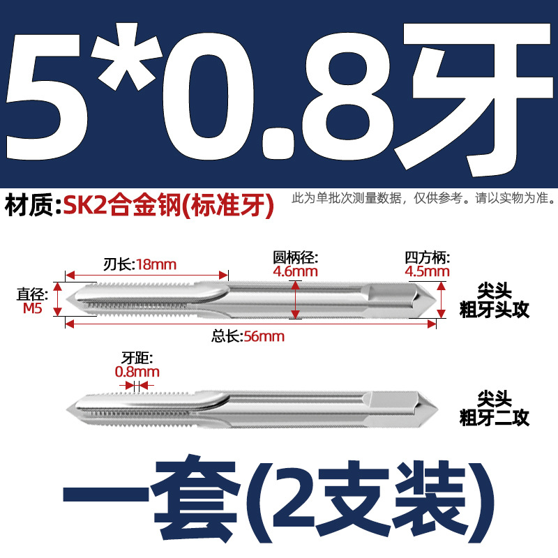 핸드 탭 (2 팩) 핸드 탭 스레드 탭 세트 미터/미세 치아 3M4M5M6M8M10mm