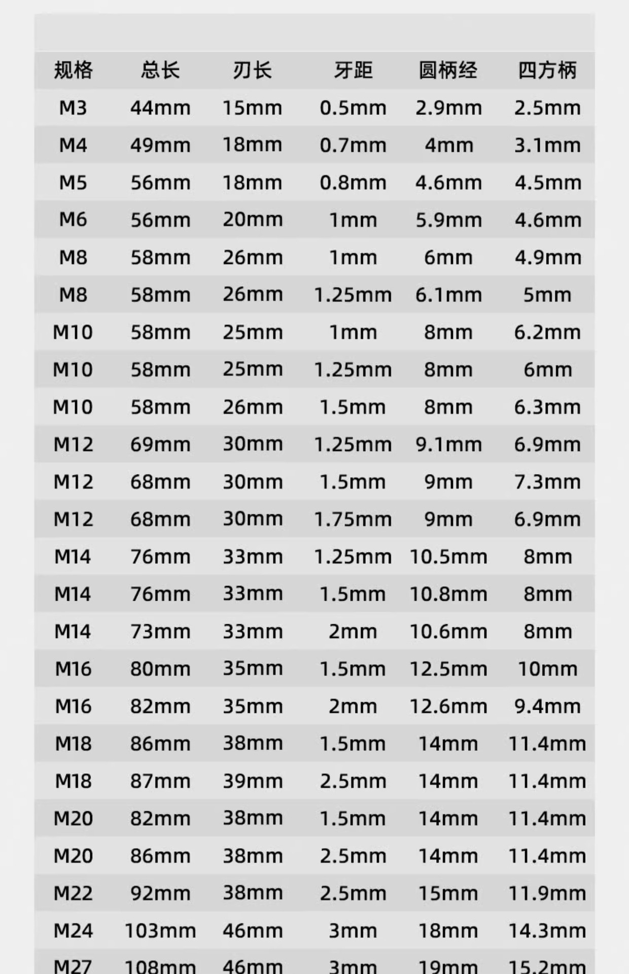 • M12*1.75 표준 치아