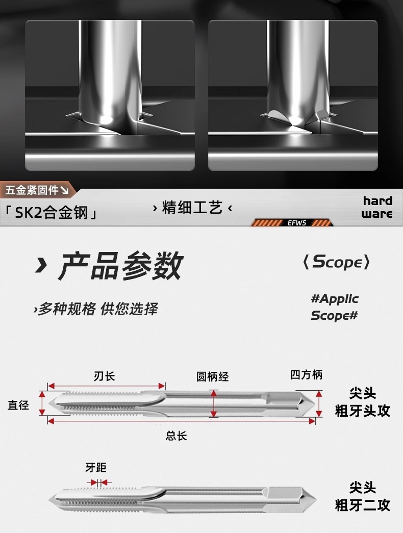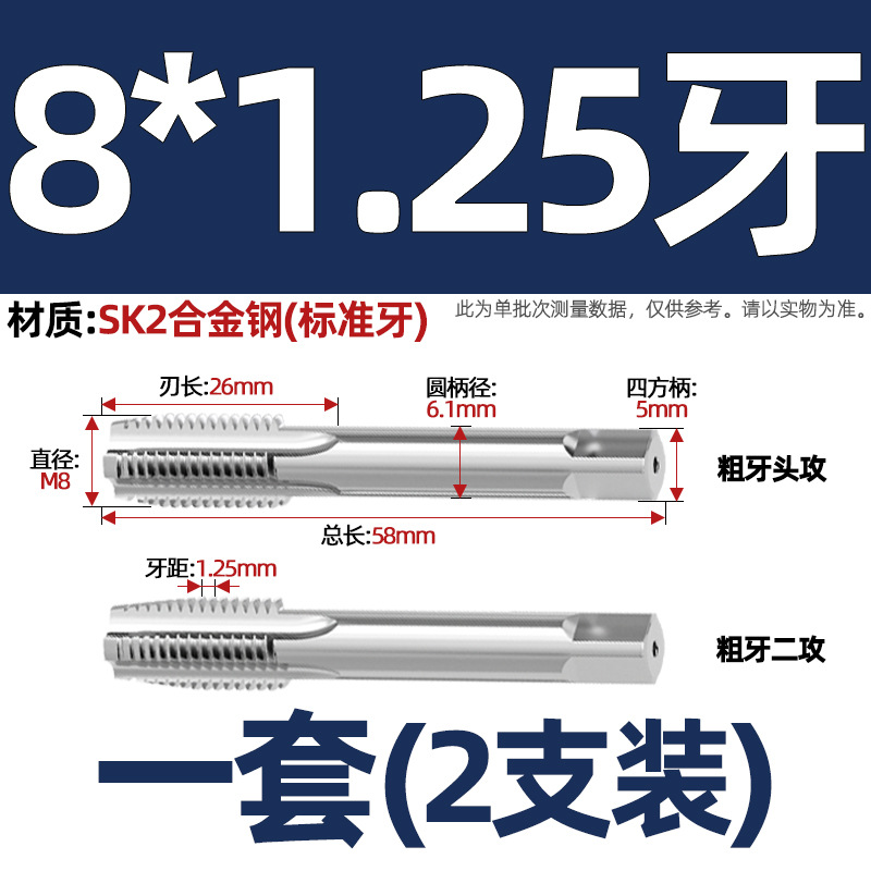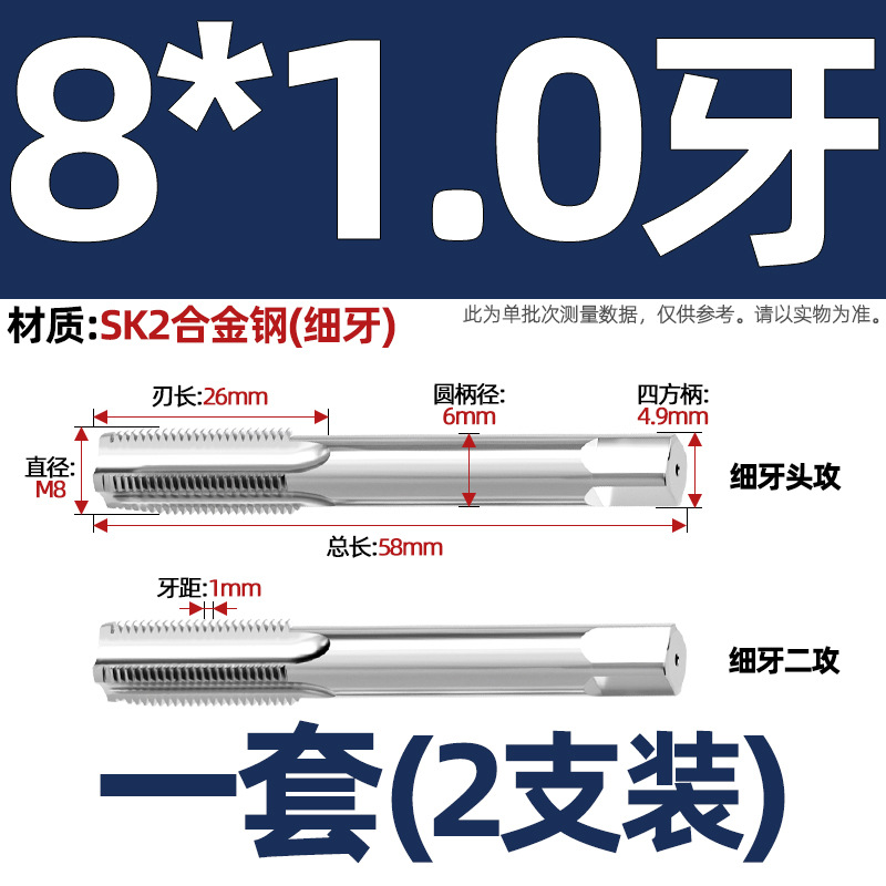 핸드 탭 (2 팩) 핸드 탭 스레드 탭 세트 미터/미세 치아 3M4M5M6M8M10mm스토어 가기