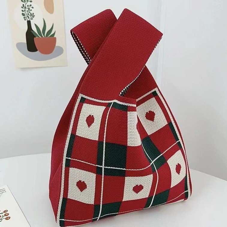 일본과 한국식 올매치 핸드백 캐주얼 핸드 컴패니언 선물 손목 인스타그램 인터넷 인기 핸드백 여성용 니트 토트 백