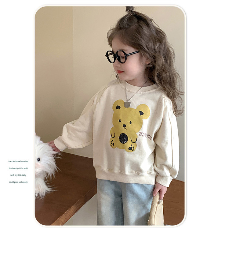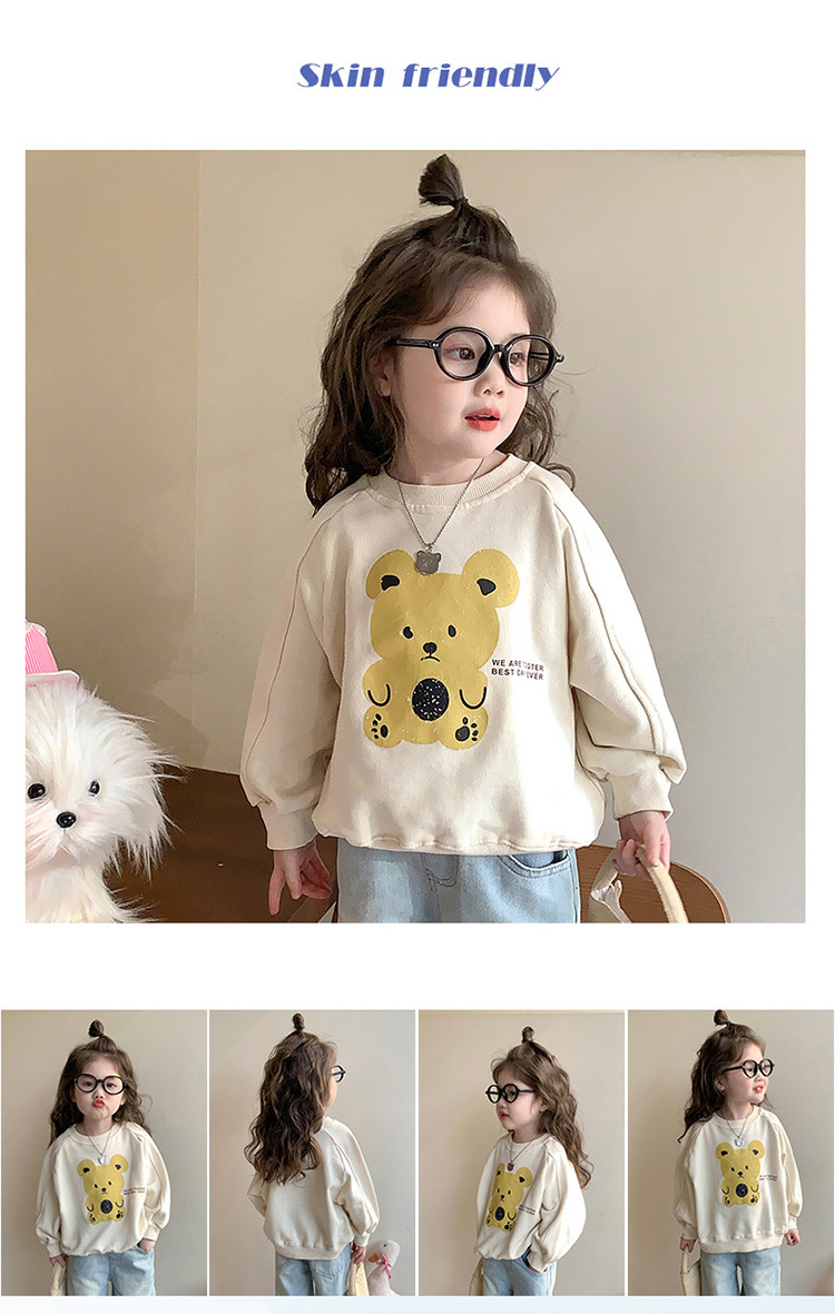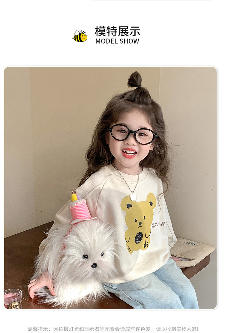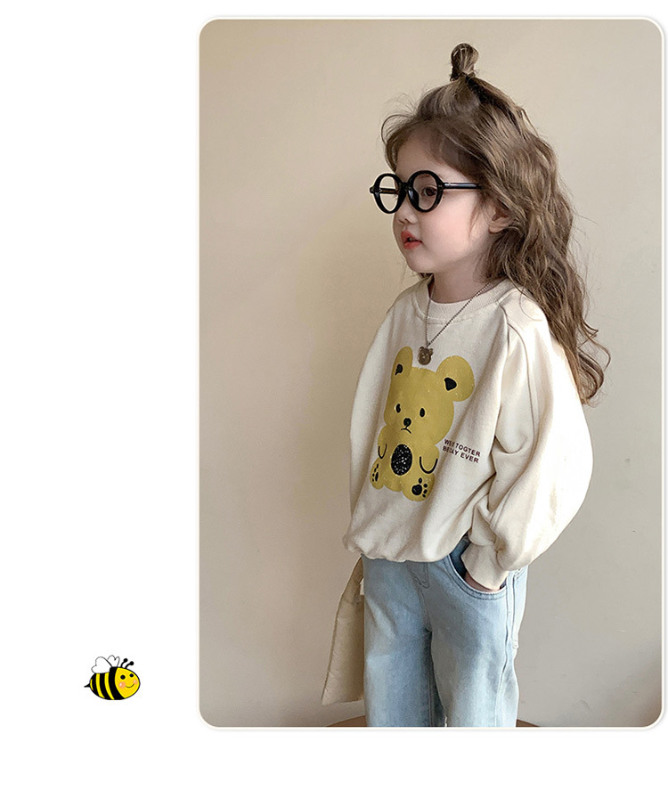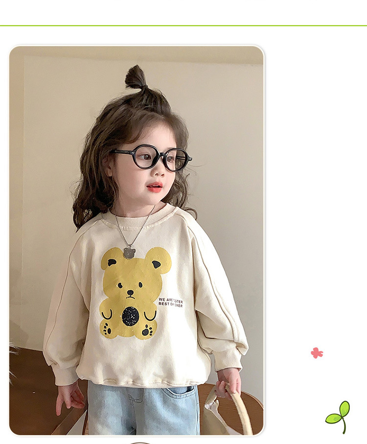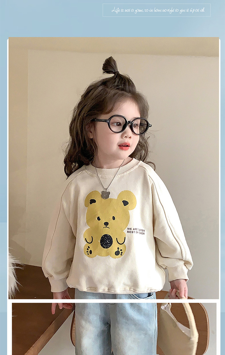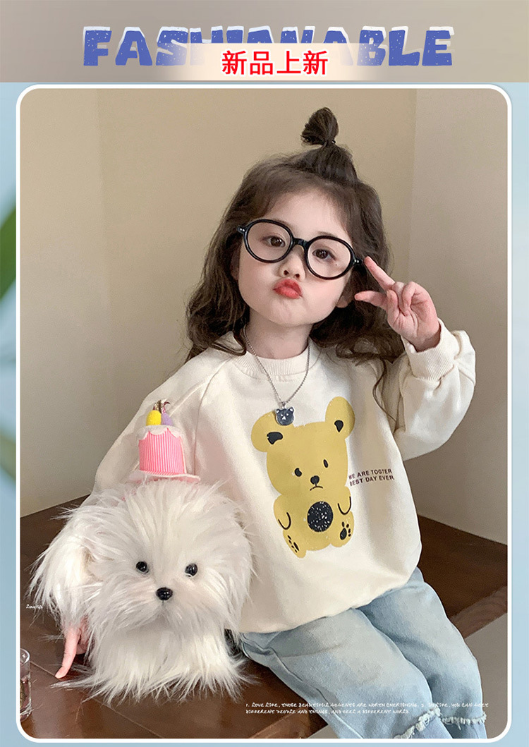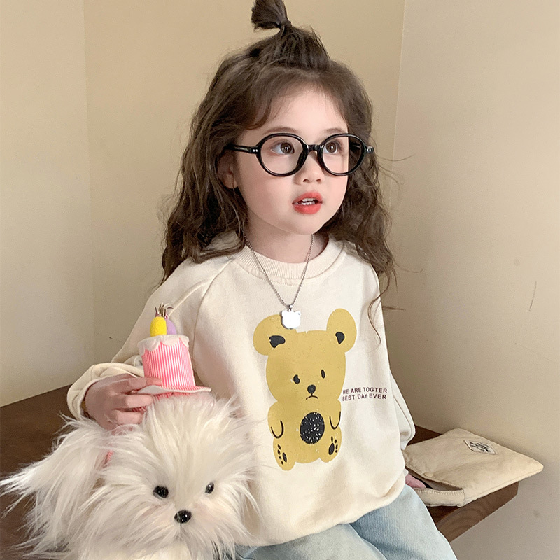 소녀 곰 베이지 색 스웨터 봄과 가을 2025 새로운 유행 어린 소녀 캐주얼 최고 아동베이스 셔츠스토어 가기