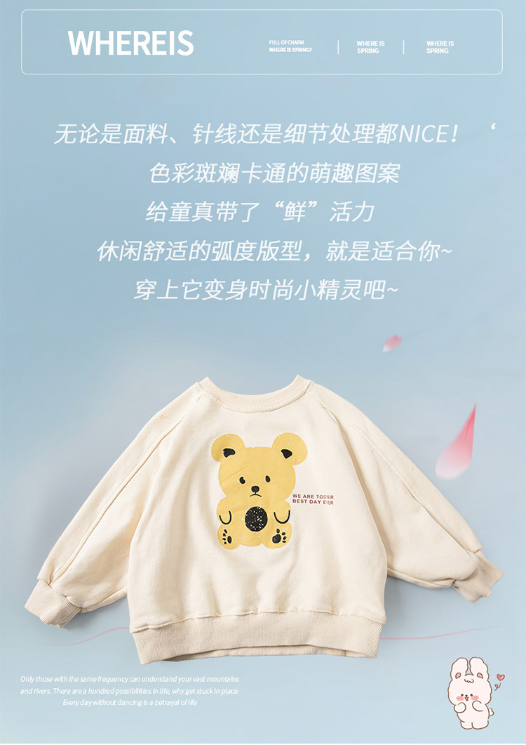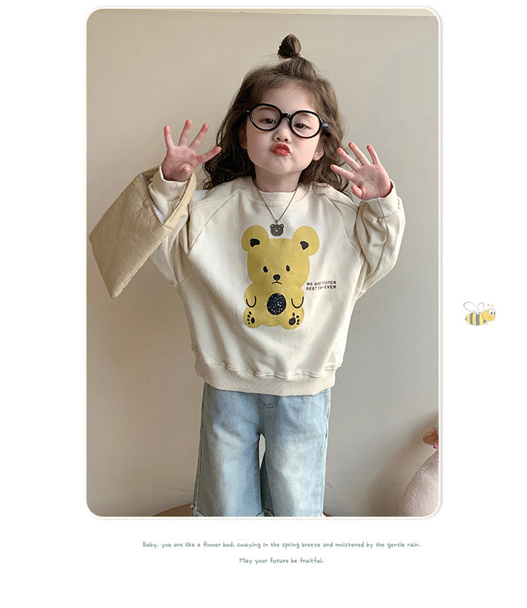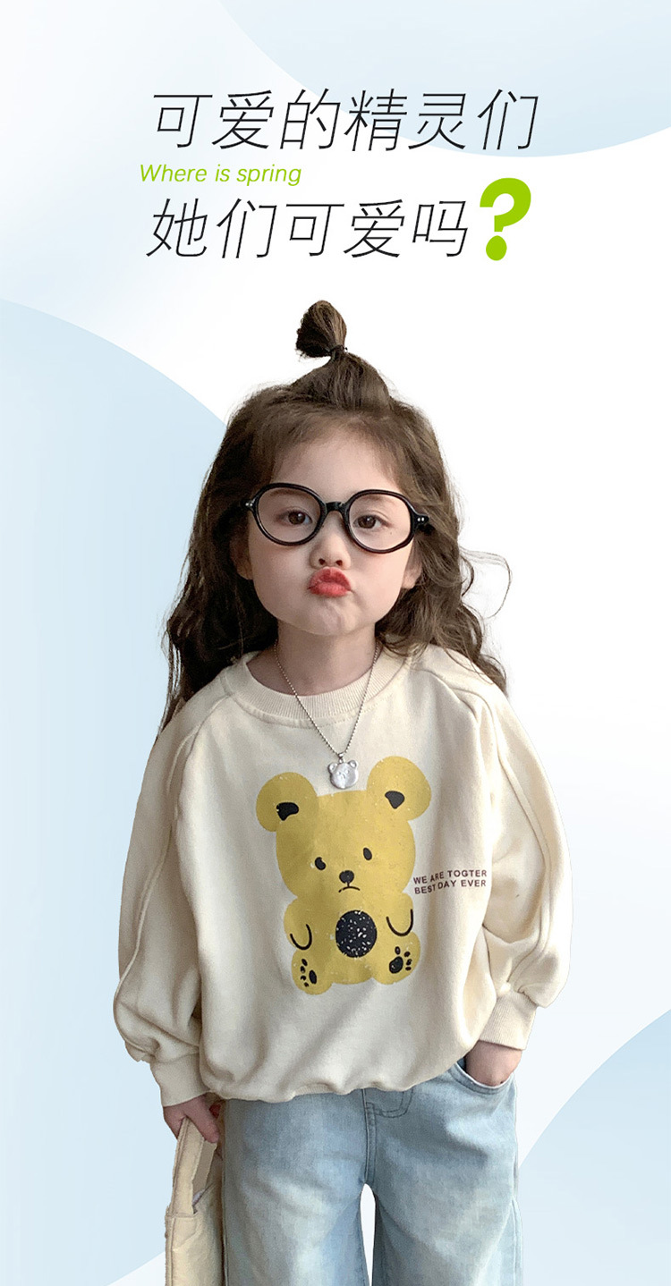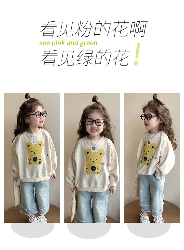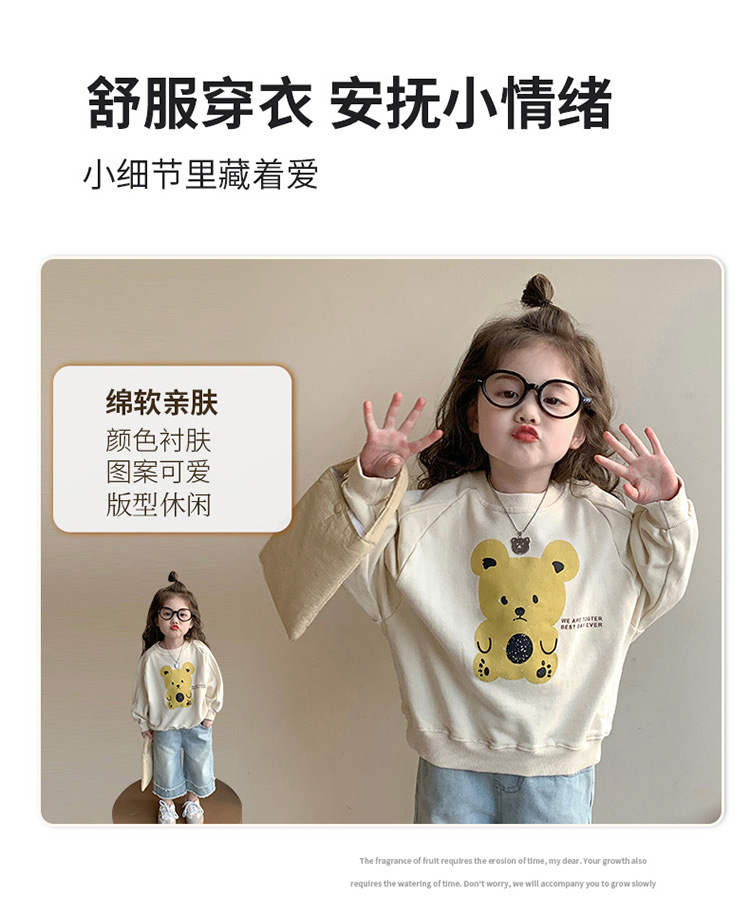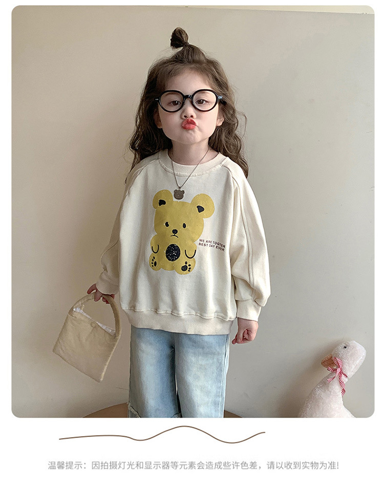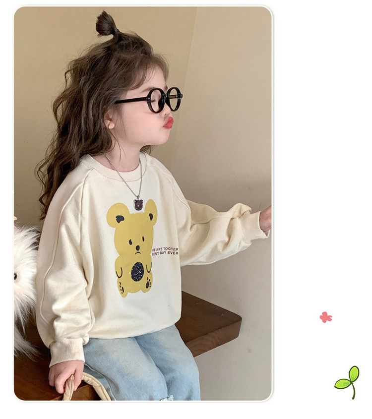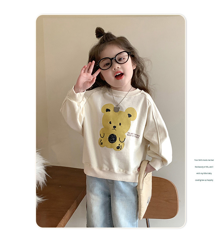 소녀 곰 베이지 색 스웨터 봄과 가을 2025 새로운 유행 어린 소녀 캐주얼 최고 아동베이스 셔츠스토어 가기