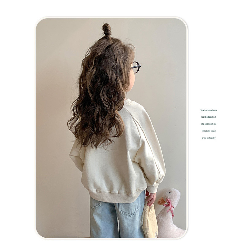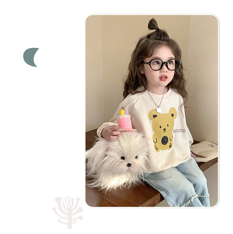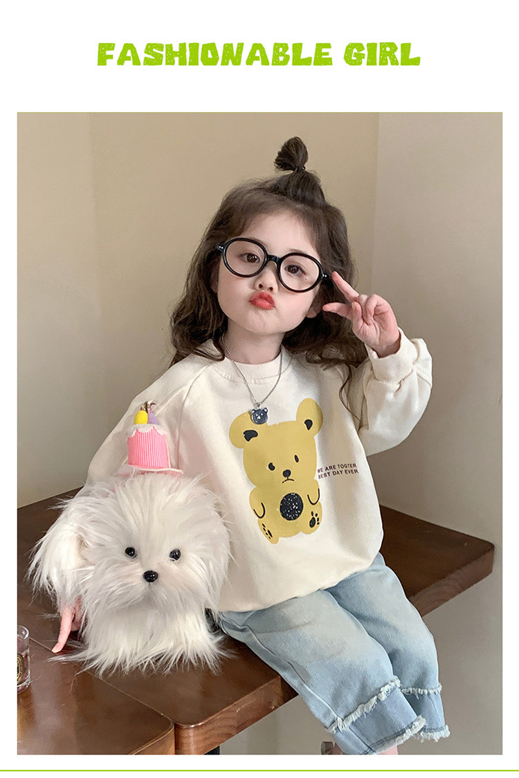 소녀 곰 베이지 색 스웨터 봄과 가을 2025 새로운 유행 어린 소녀 캐주얼 최고 아동베이스 셔츠