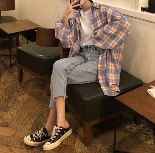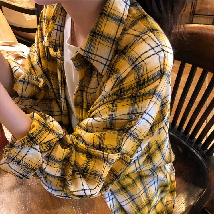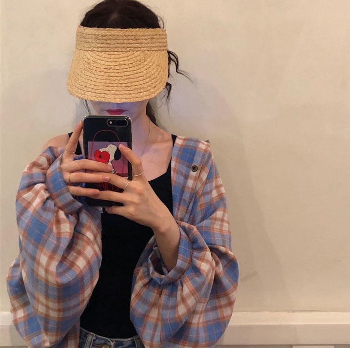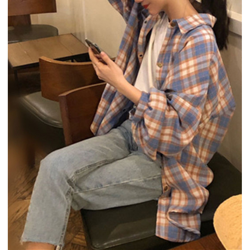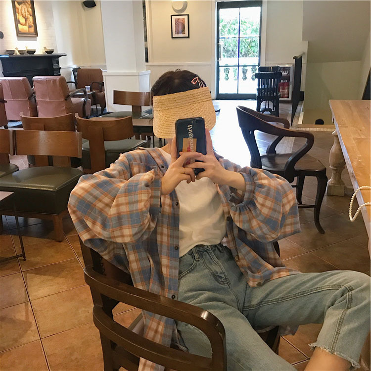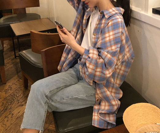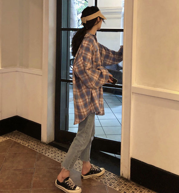 국경 간 여성용 격자 무늬 셔츠 여성용 중간 길이 느슨한 자외선 차단 셔츠 얇은 코트 카디건 탑 긴팔면 및 린넨 셔츠스토어 가기