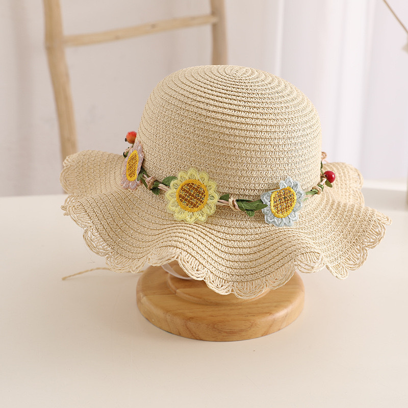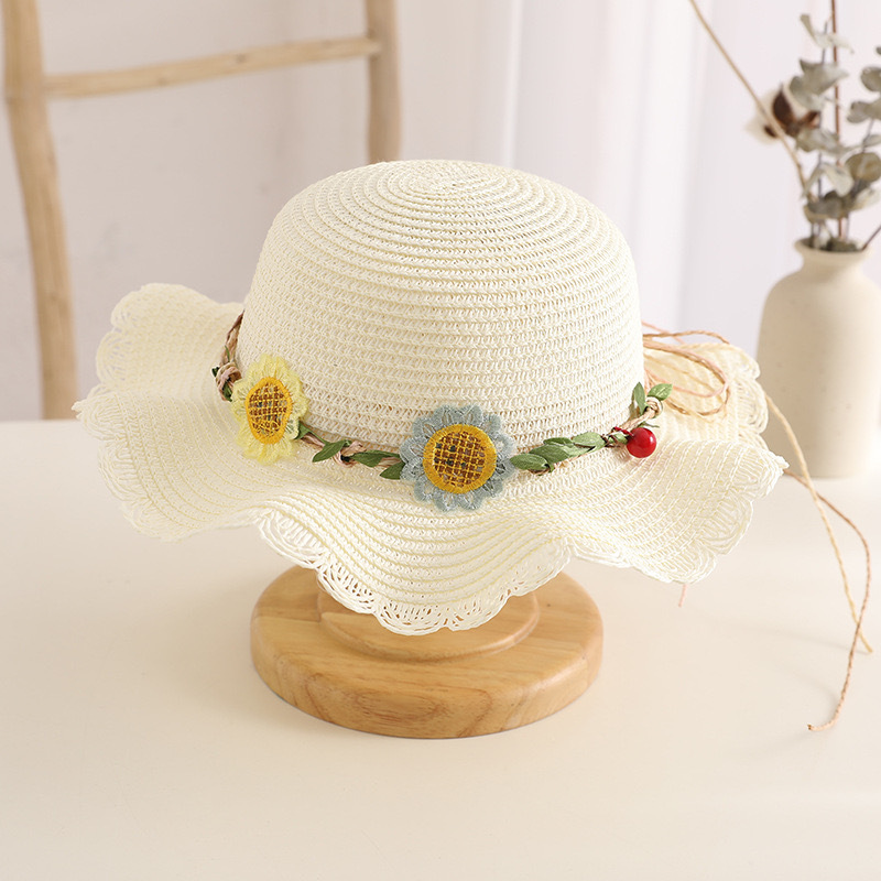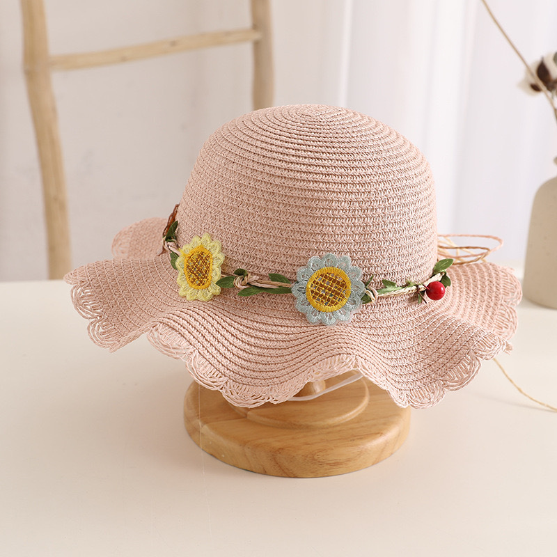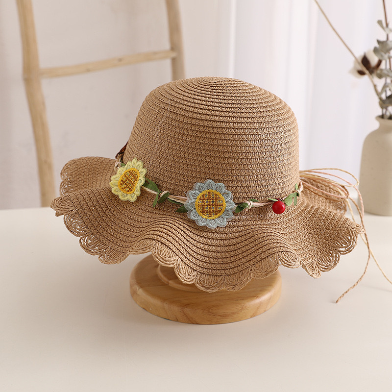 새로운 소녀 해변 공주 모자 양산 모자 어린이 꽃 밀짚 모자 가방 세트 태양 모자 여름 시원한 모자