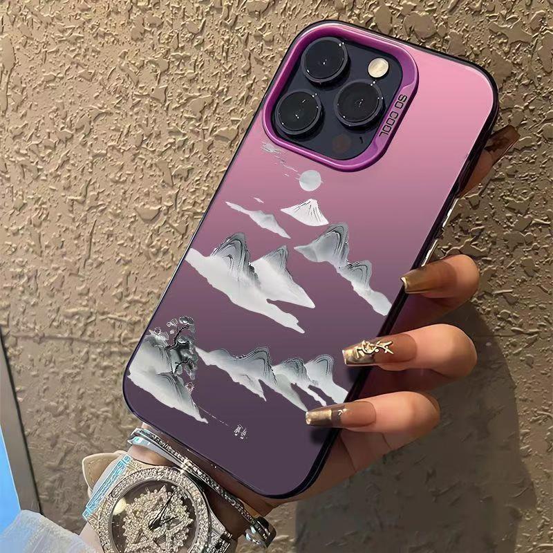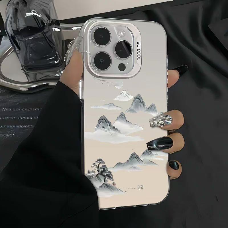 잉크 그림 애플 16/15/14Pro 전화 케이스 15 promax13/12/drop-resistant 용 산 색 실버 케이스스토어 가기