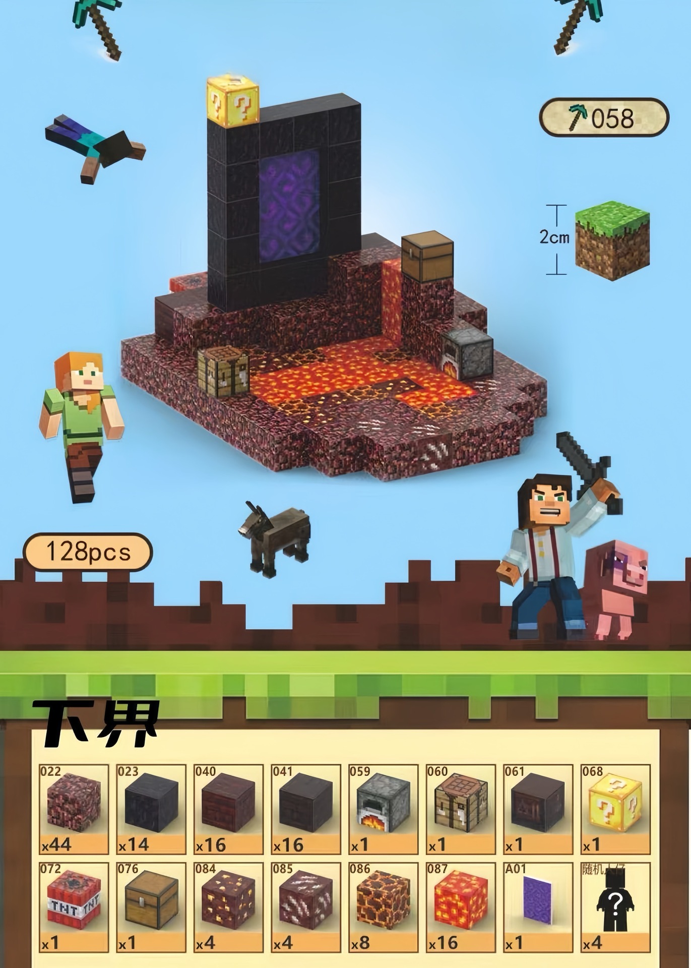 • 크로스보더 품질 [네더] 입자 128개 + 무작위 미니피겨 4개 + 설명서