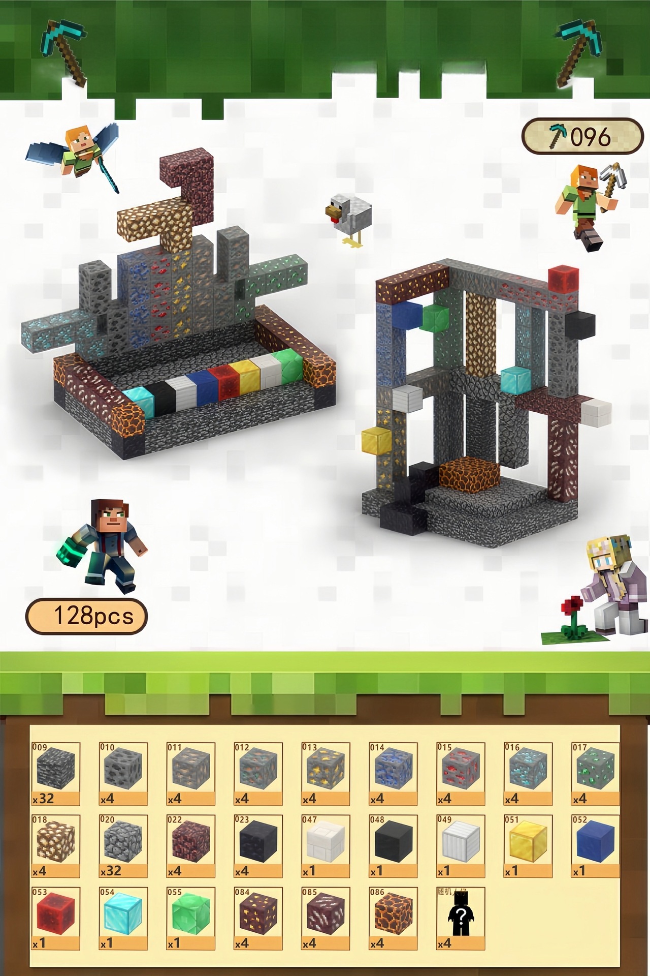 • 크로스보더 품질 [미네랄 타이쿤] 입자 128개 + 무작위 미니피겨 6개 + 사용 설명서