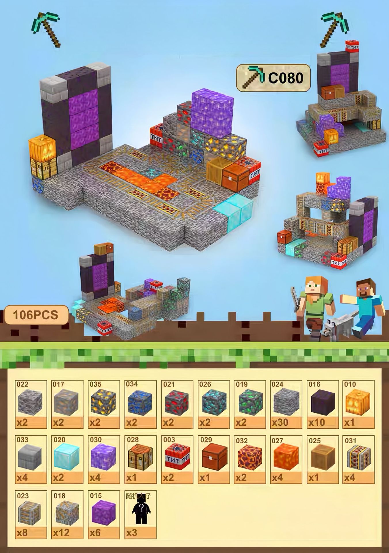 • 크로스보더 품질 [집에 광산이 있습니다] 입자 32개 + 무작위 미니피겨 1개 + 사용 설명서