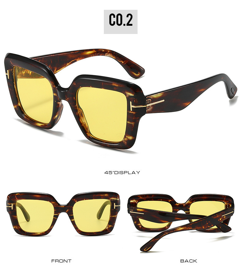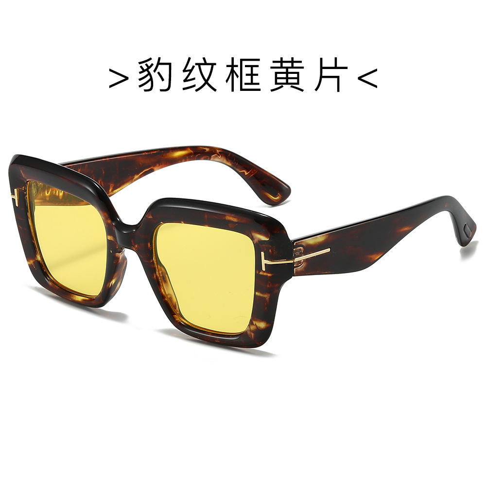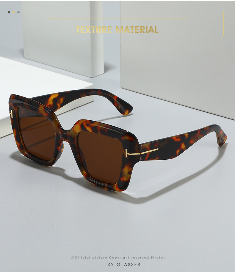 跨境新款秋冬欧美大框方形玳瑁豹纹色复古墨镜女潮街拍复古太阳镜