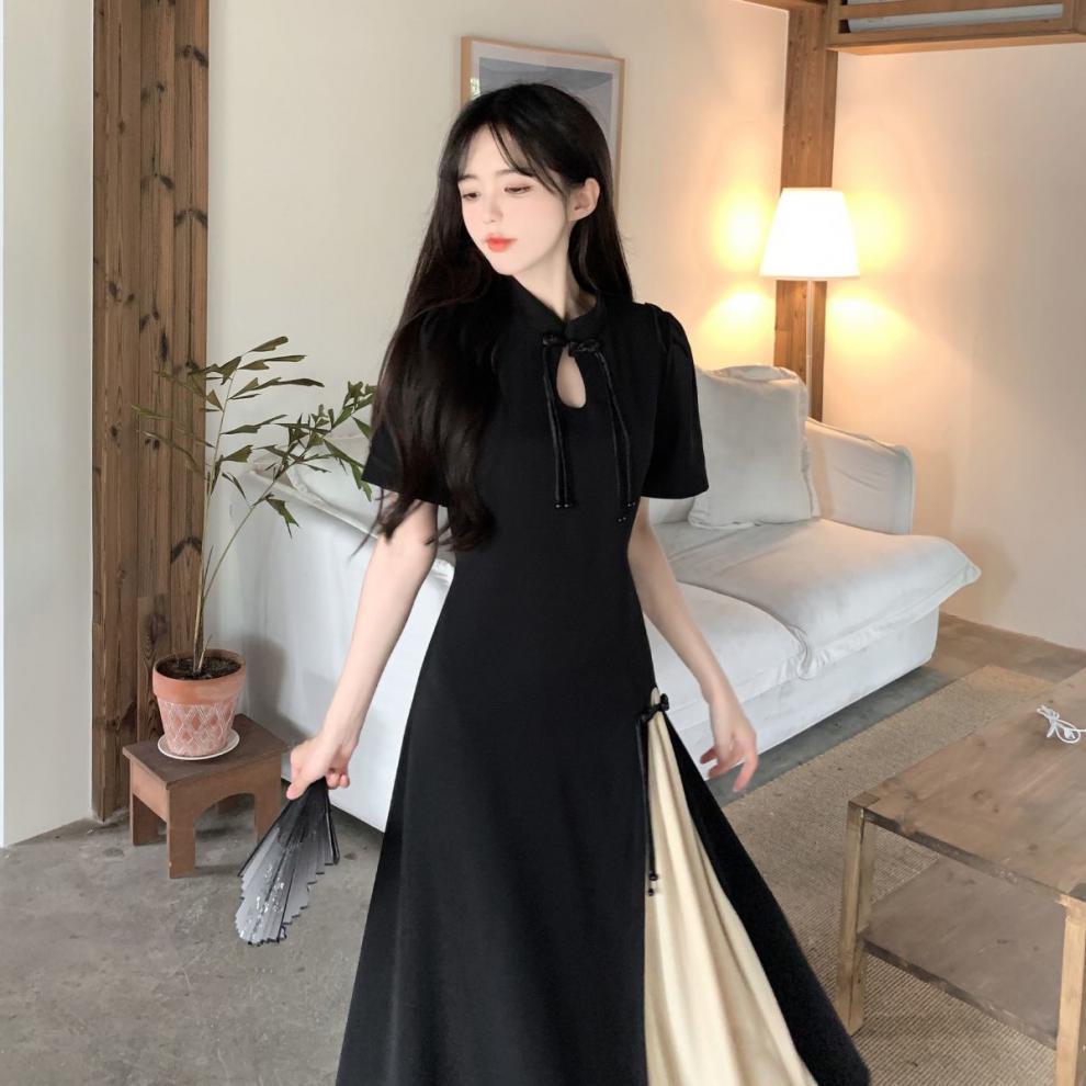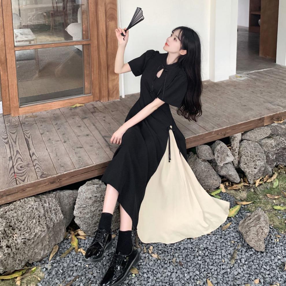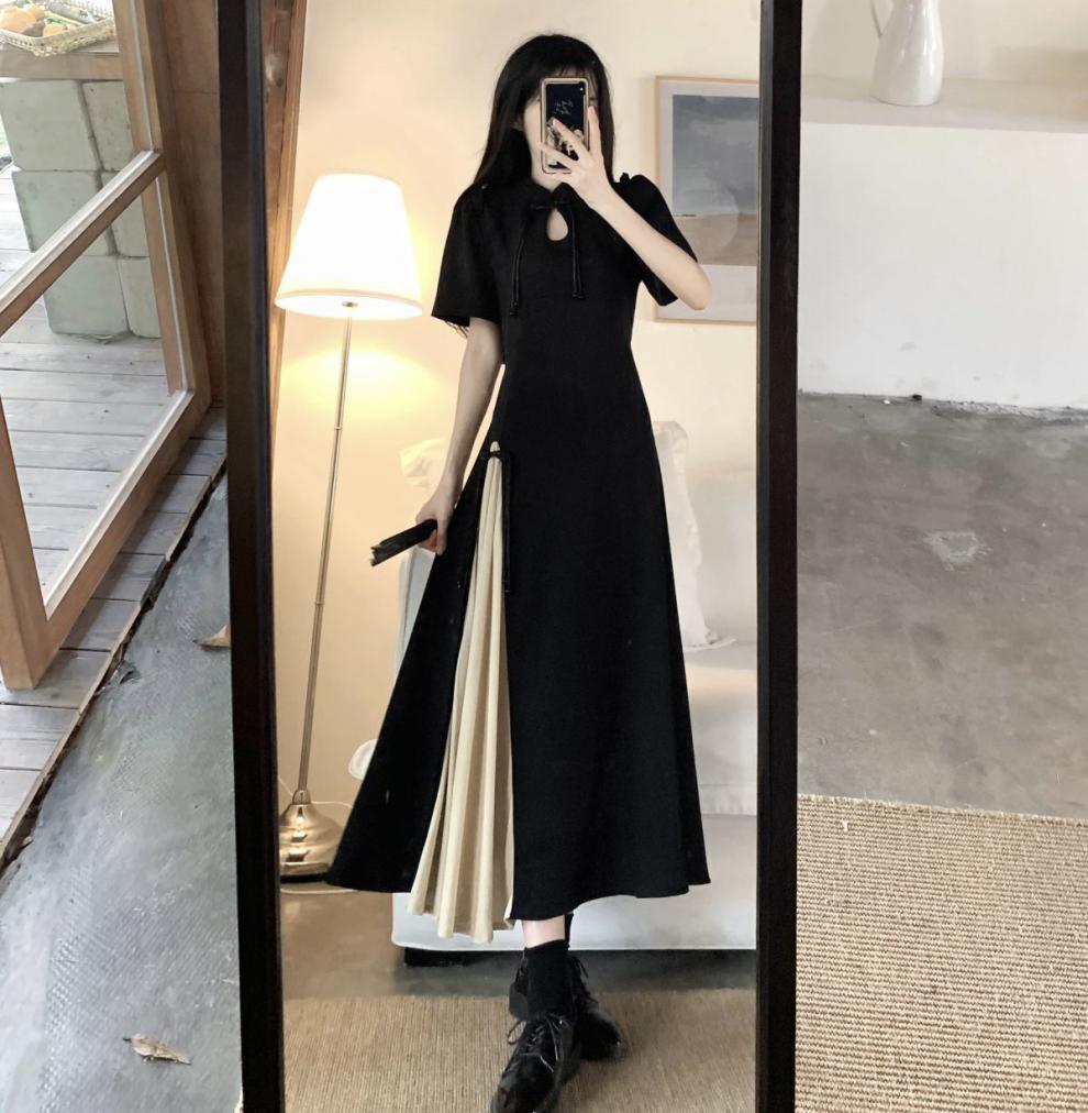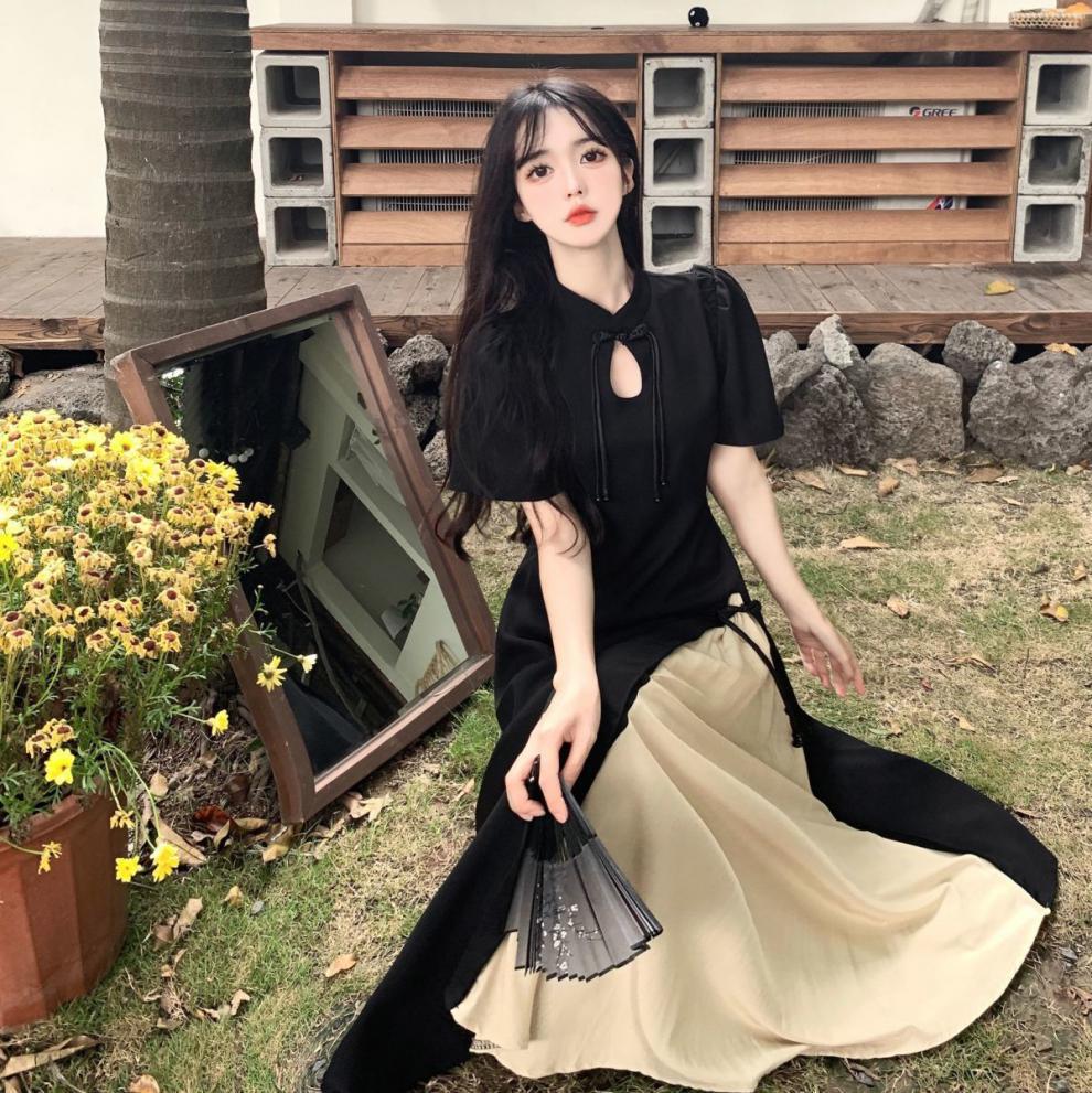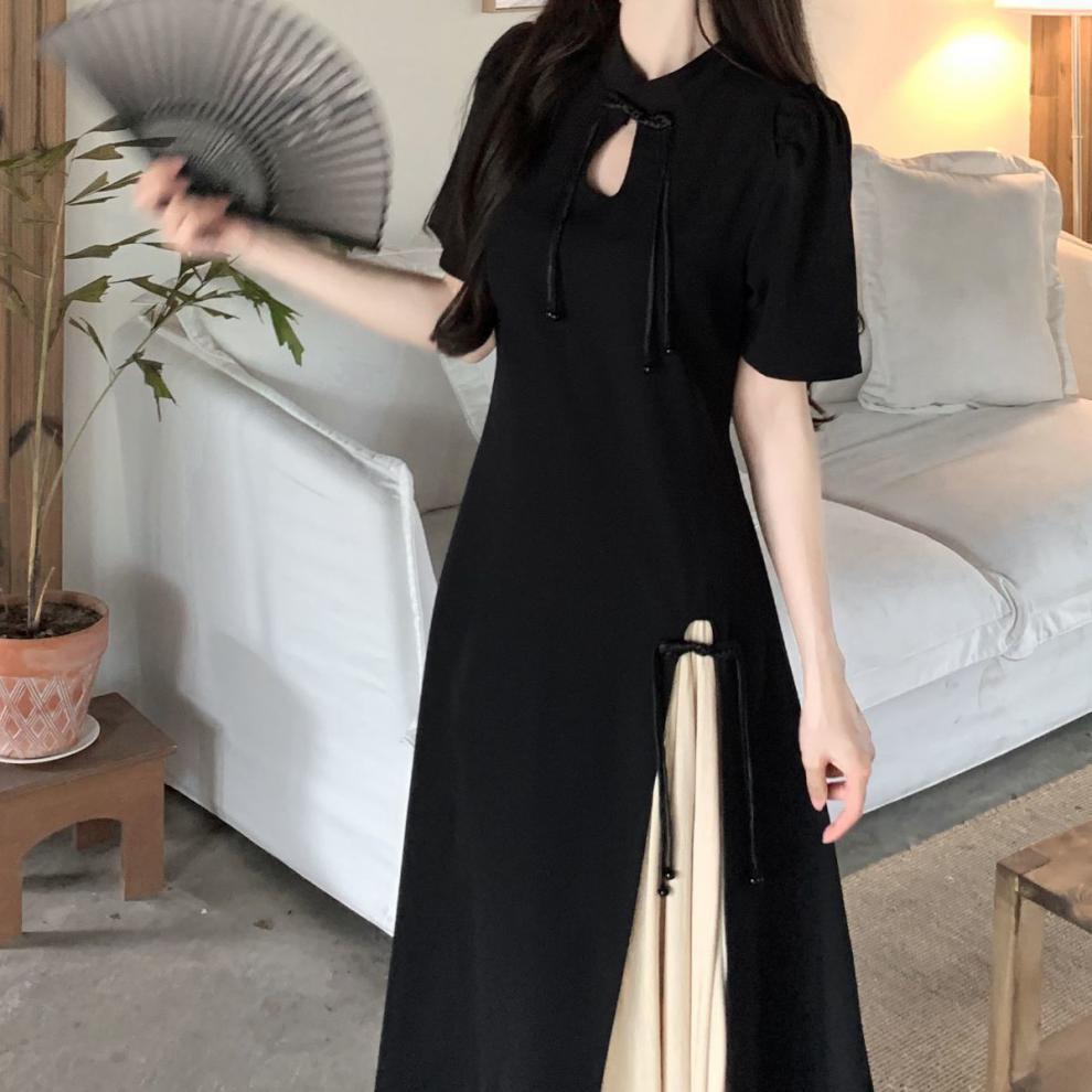 전국 스타일 여성 의류 여름 플러스 사이즈 여름 새로운 중국 스타일 개선 청삼 원피스 통통녀 분할 슬리밍 배꼽 커버 스커트스토어 가기