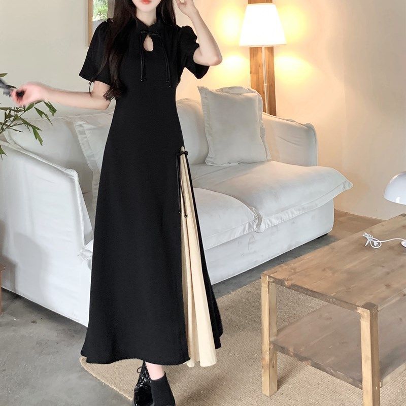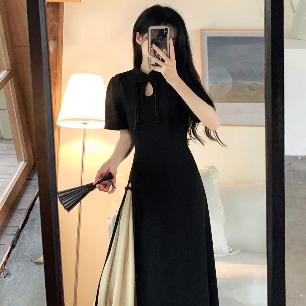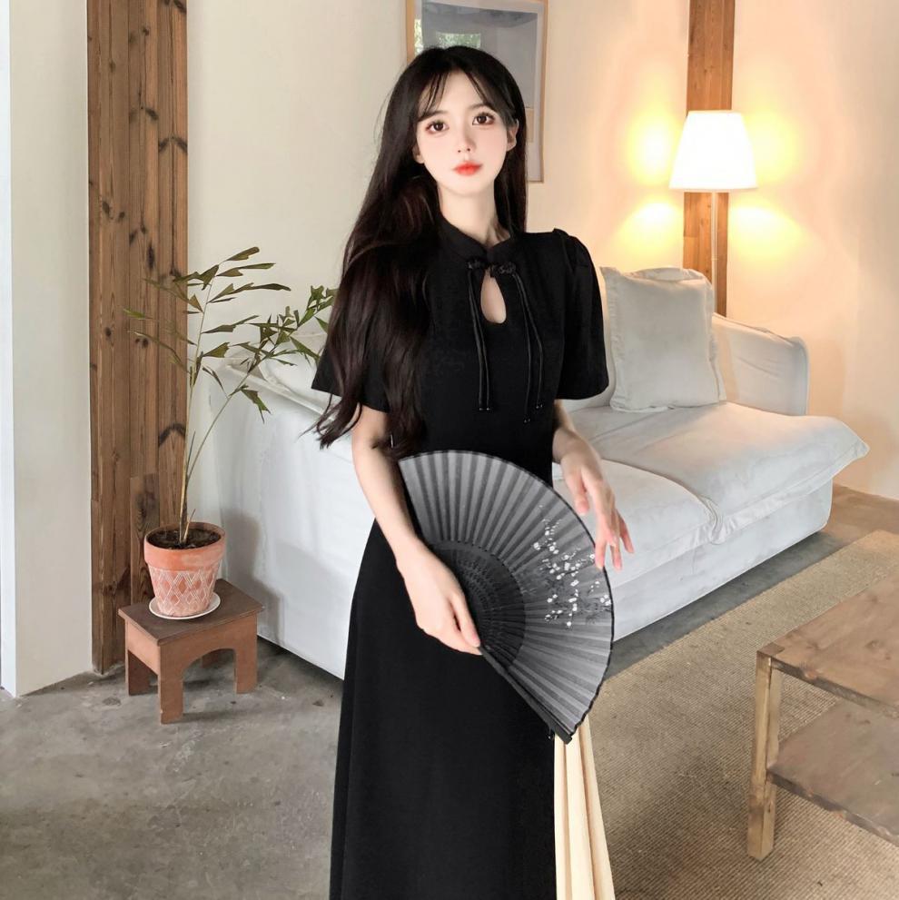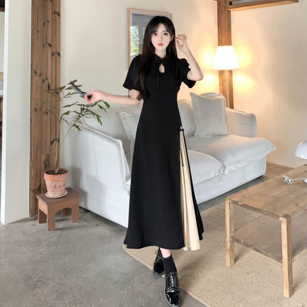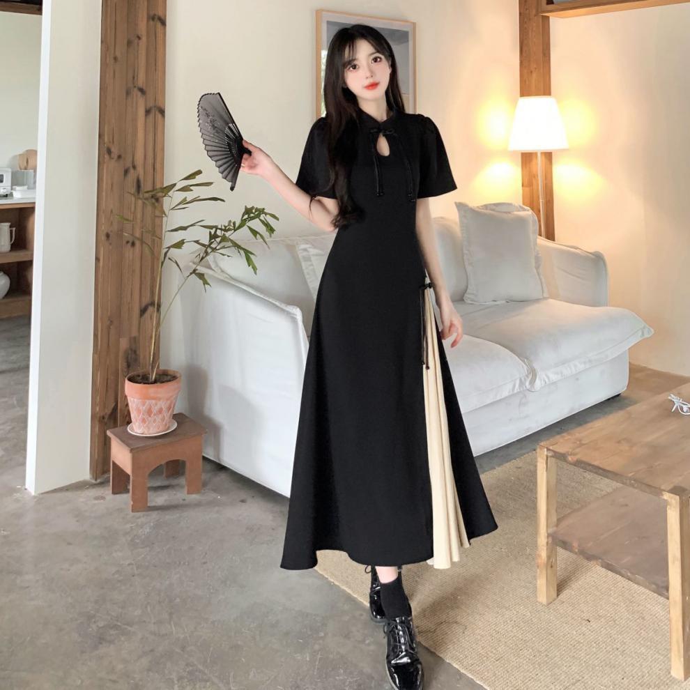 전국 스타일 여성 의류 여름 플러스 사이즈 여름 새로운 중국 스타일 개선 청삼 원피스 통통녀 분할 슬리밍 배꼽 커버 스커트스토어 가기