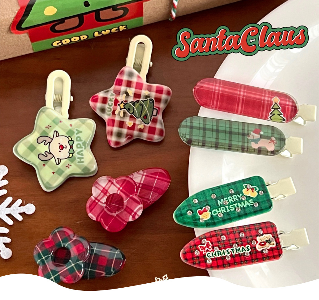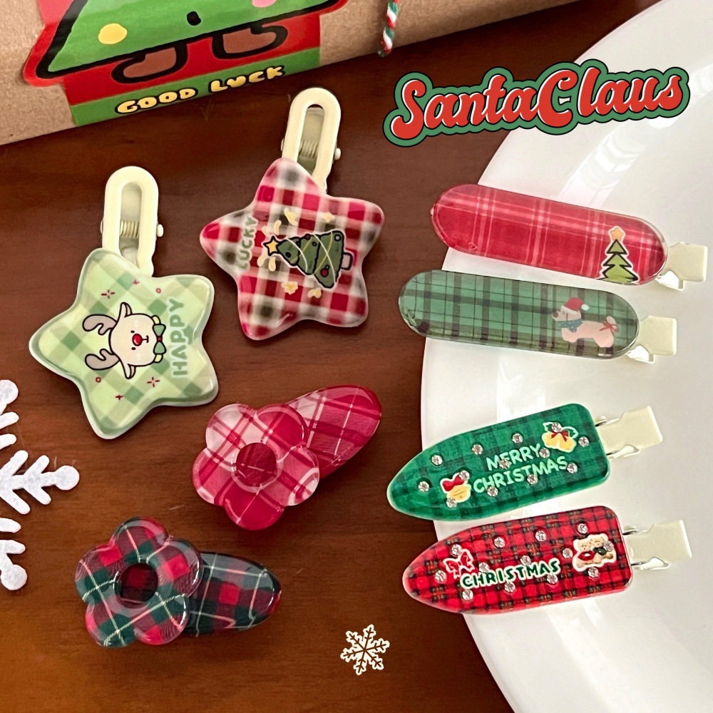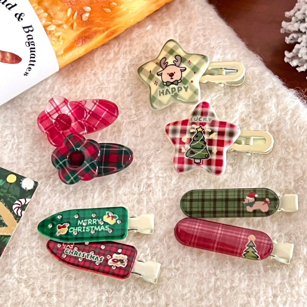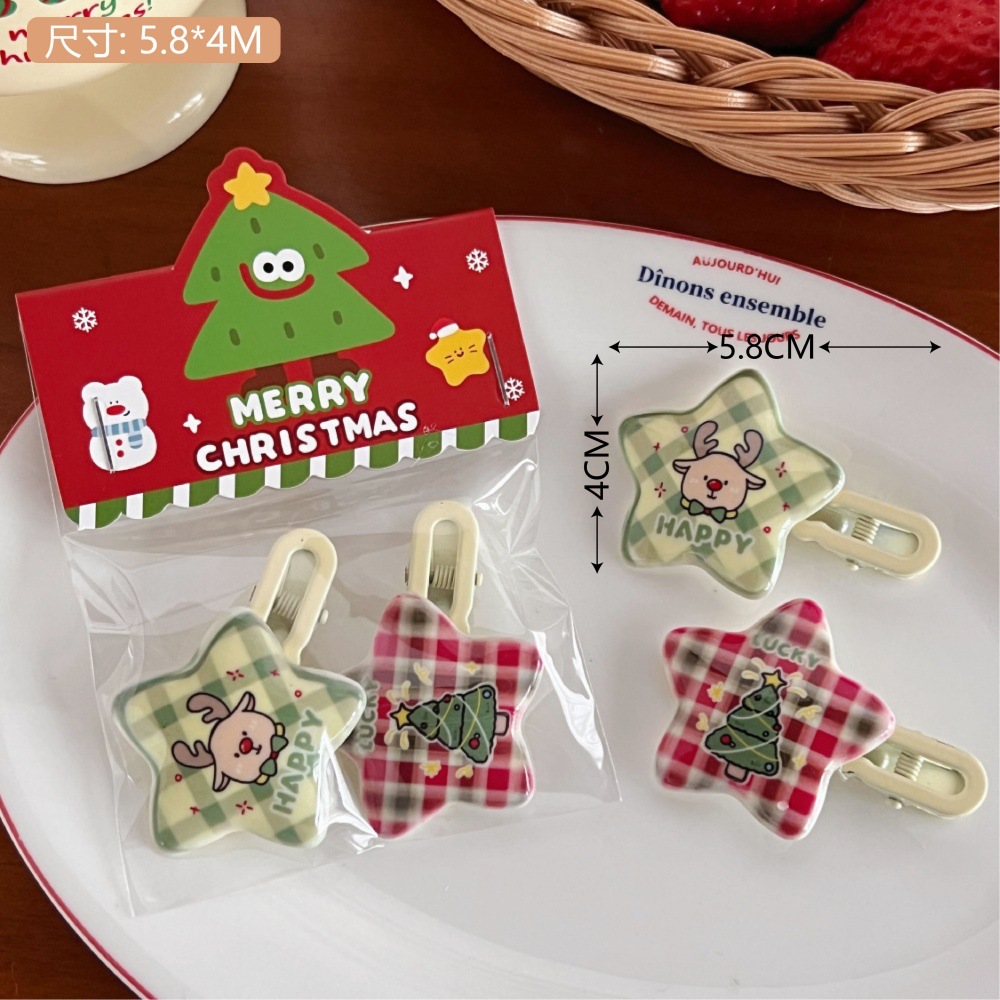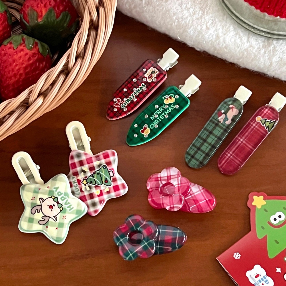 소녀들을 위한 크리스마스 귀여운 격자 무늬 머리핀, 다용도 무봉제 클립, 크리스마스 장식 앞머리 사이드 클립, 별 머리핀