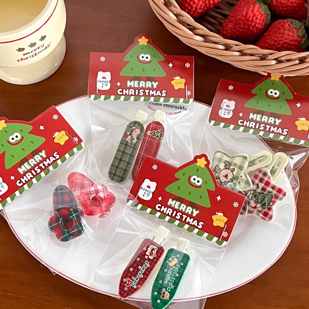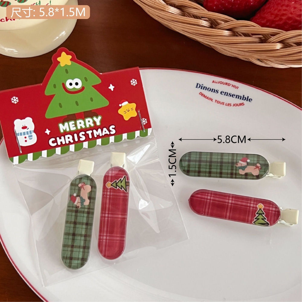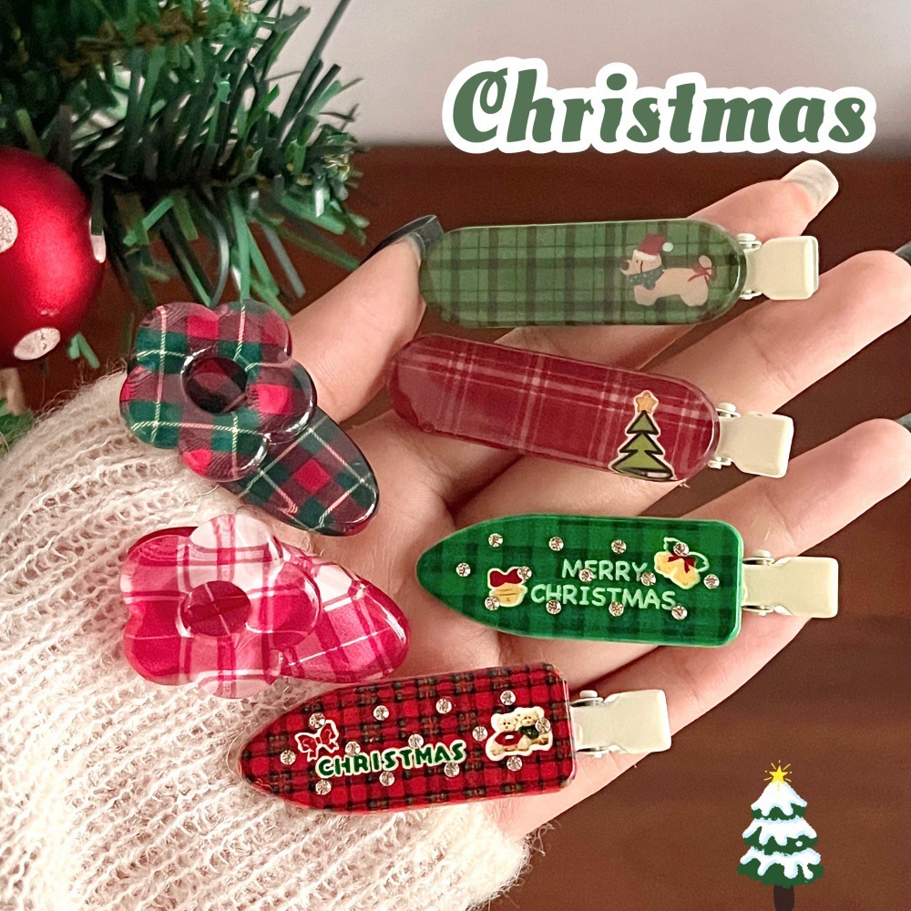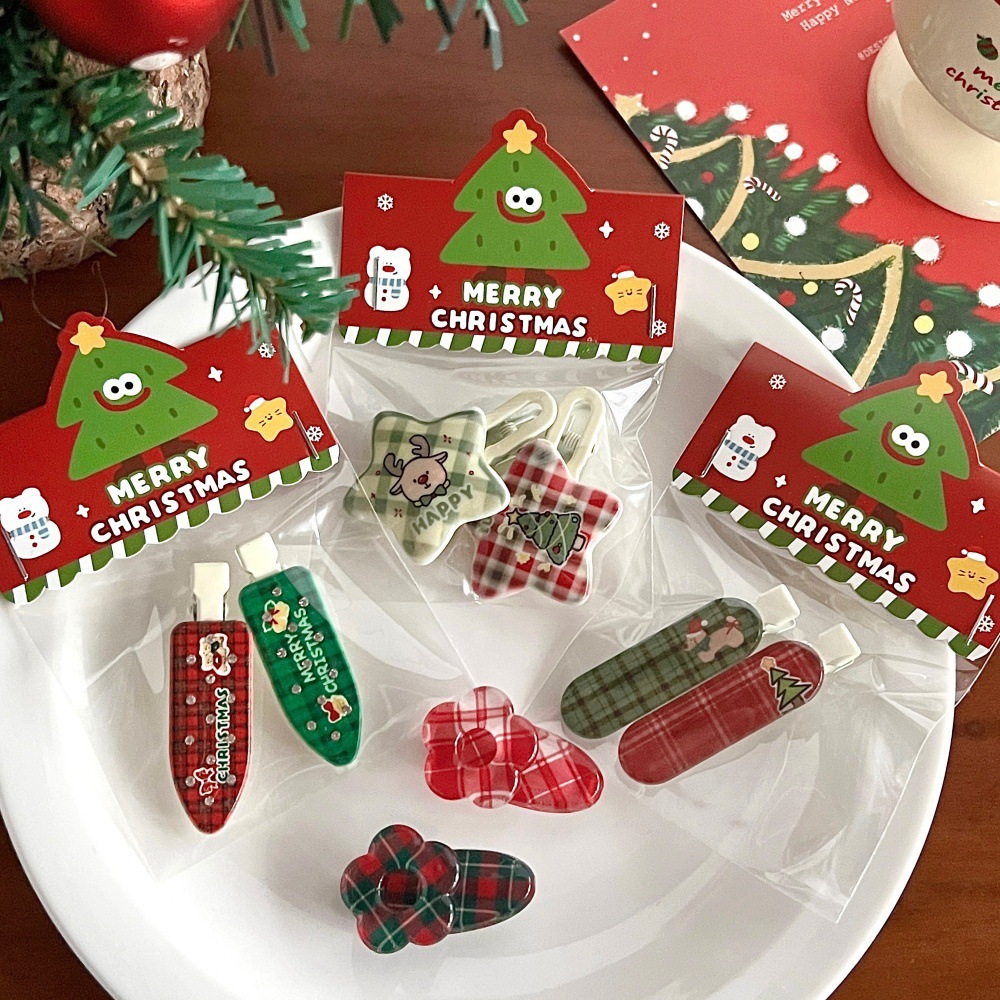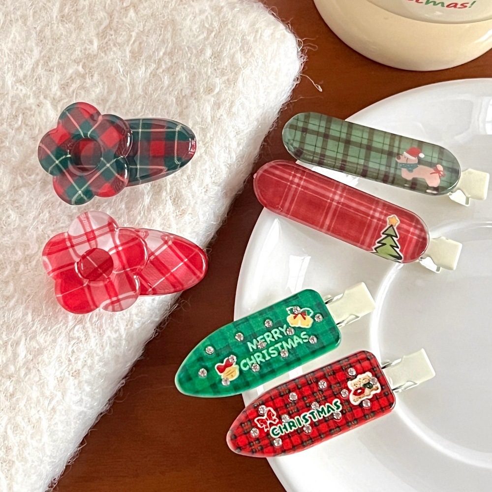 소녀들을 위한 크리스마스 귀여운 격자 무늬 머리핀, 다용도 무봉제 클립, 크리스마스 장식 앞머리 사이드 클립, 별 머리핀