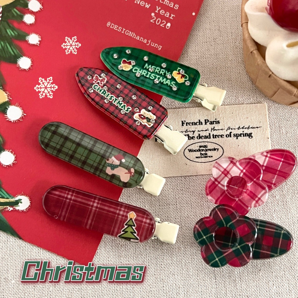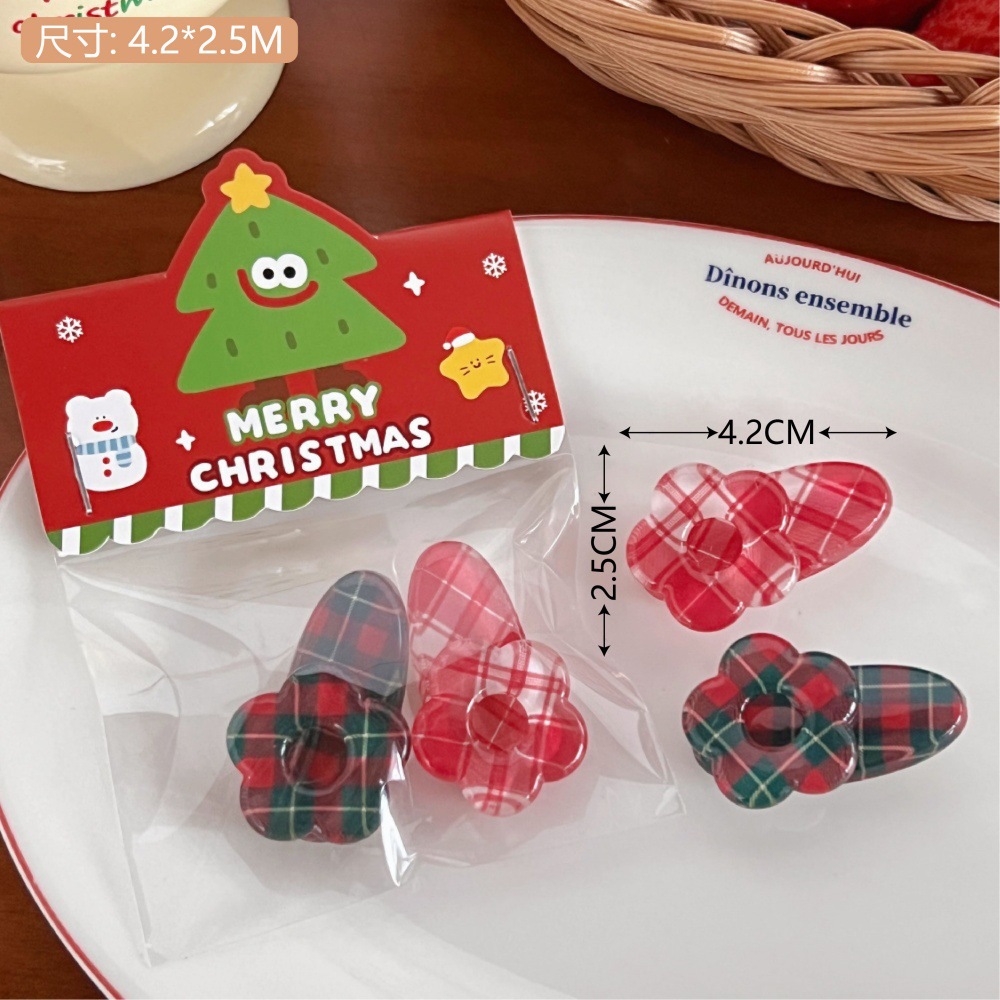 • 4 # 크리스마스 격자 무늬 꽃 머리핀
