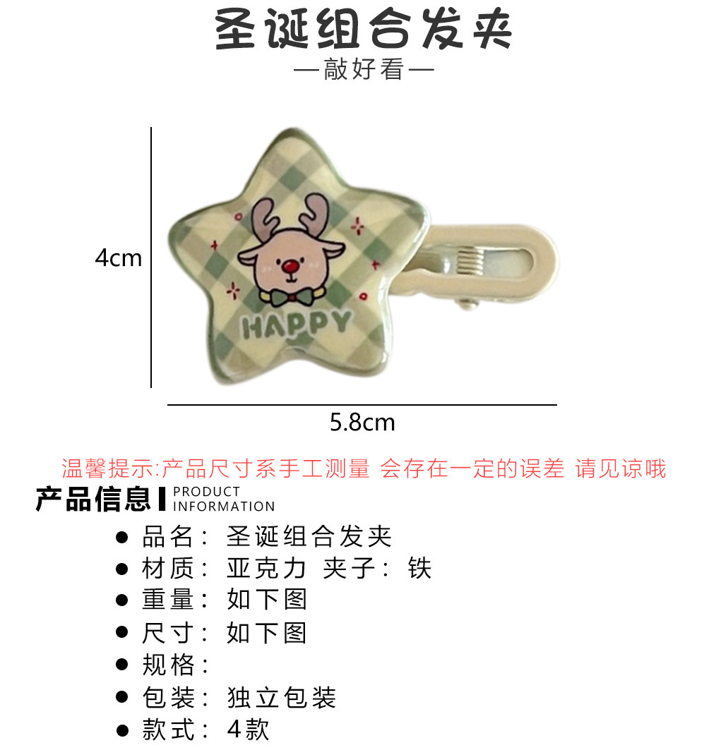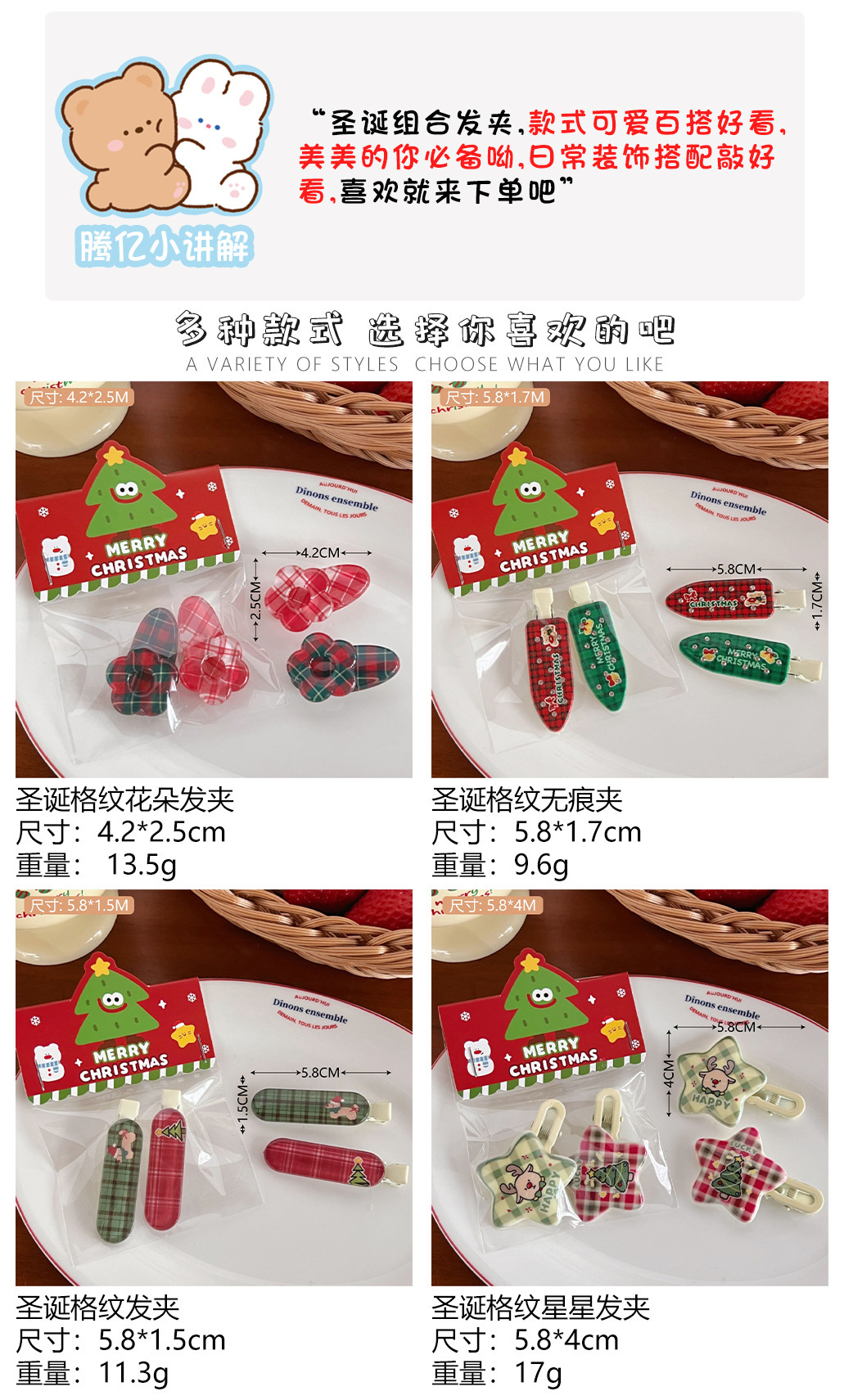 소녀들을 위한 크리스마스 귀여운 격자 무늬 머리핀, 다용도 무봉제 클립, 크리스마스 장식 앞머리 사이드 클립, 별 머리핀스토어 가기