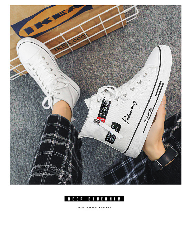 블루 캔버스 신발 남자 하이 탑 봄 통기성 캐주얼 플랫 슈즈 중학생을위한 올 매치 헝겊 신발스토어 가기