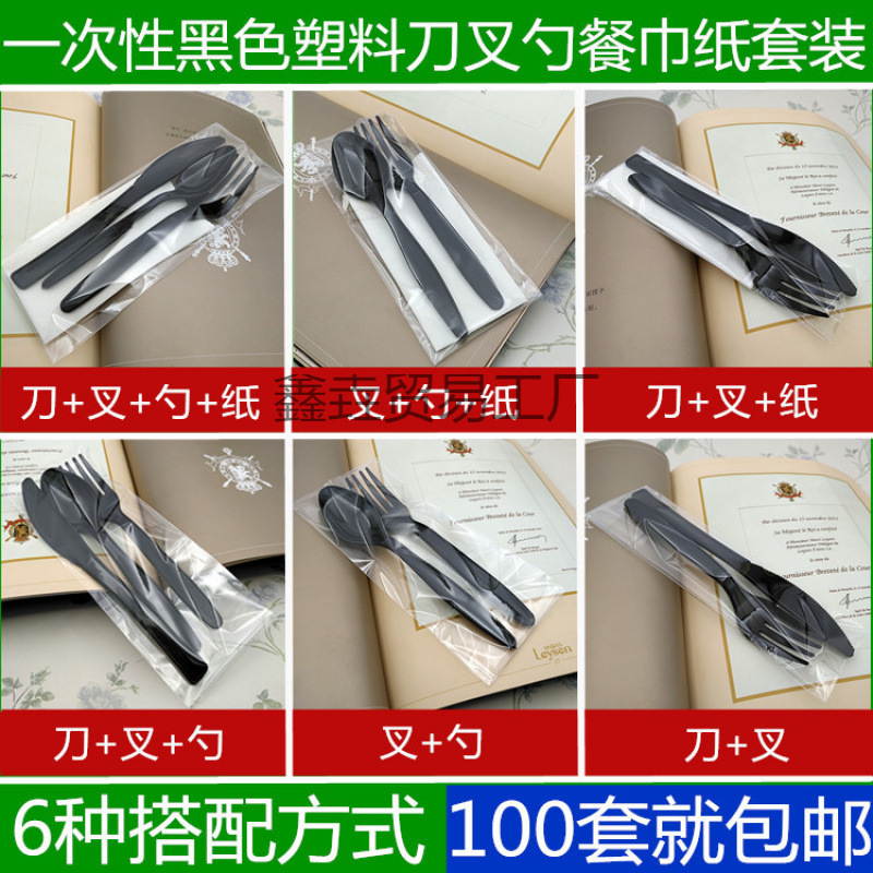 • 블랙 나이프, 포크, 스푼 + 종이 조합 100세트