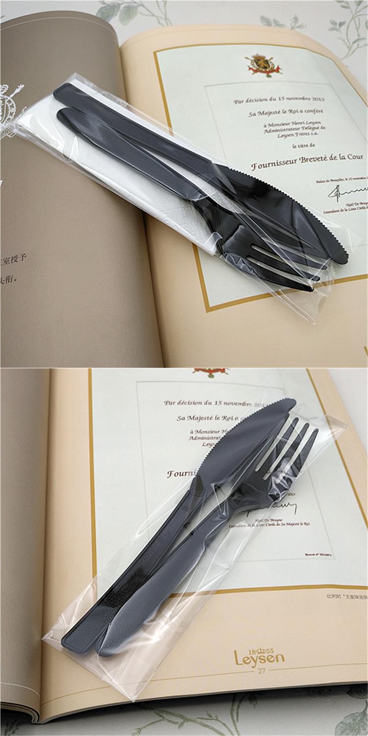 일회용 검은 플라스틱 나이프와 포크 세트 서양 음식 피자 포크 스푼 종이 3 피스 세트 과일 나이프와 포크 2 피스 세트