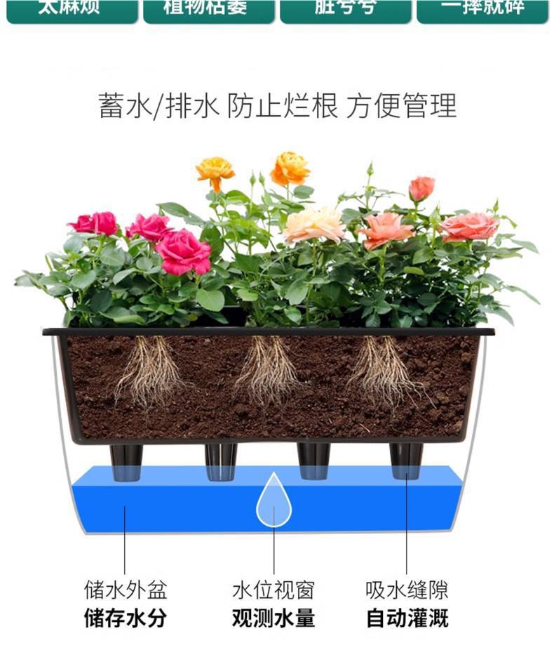 발코니 야채 냄비 자체 흡수 꽃 냄비 야채 심기 가정용 게으른 꽃 그루브 플라스틱 직사각형 플라스틱 심기 상자스토어 가기