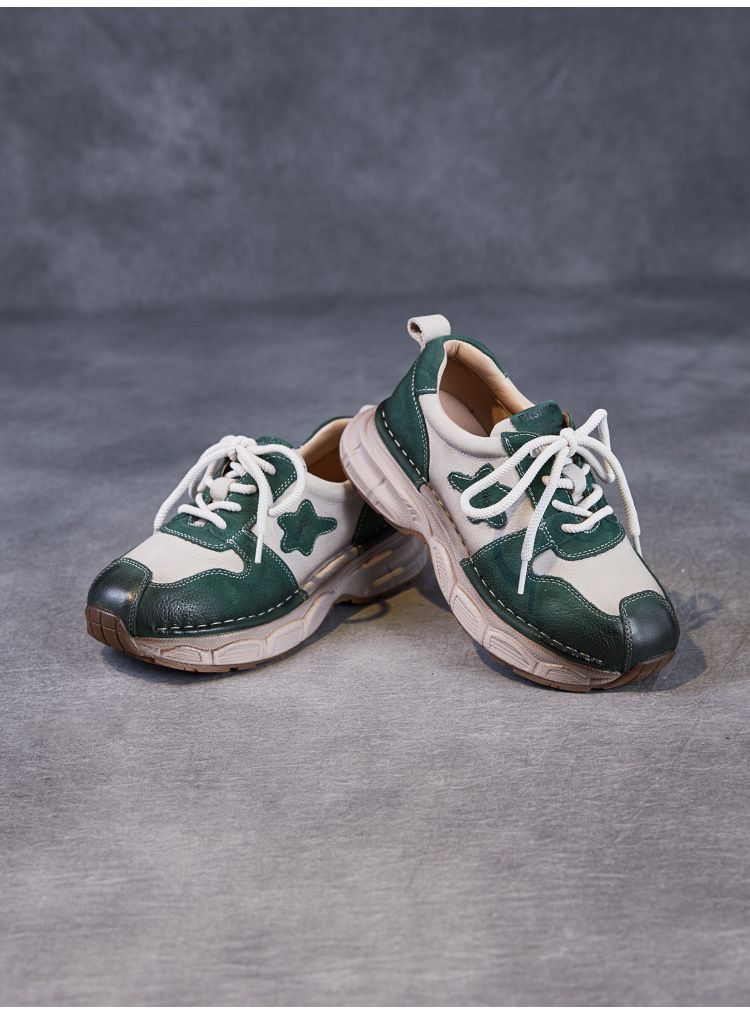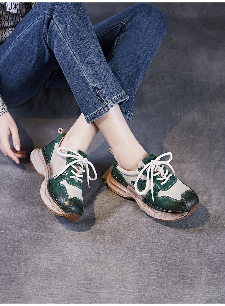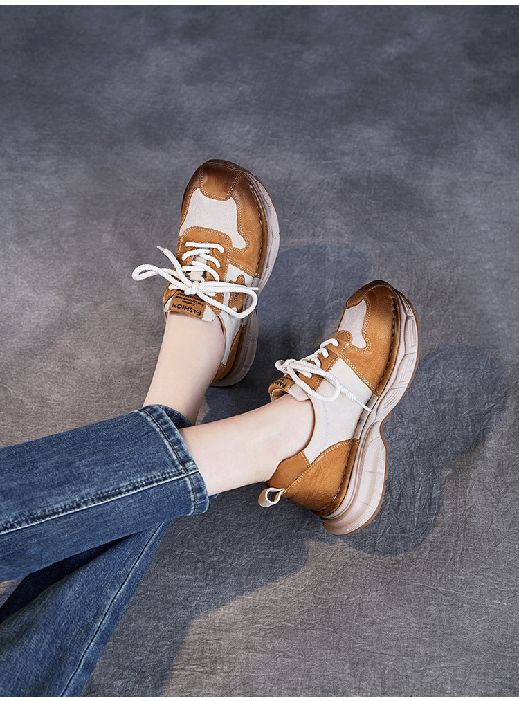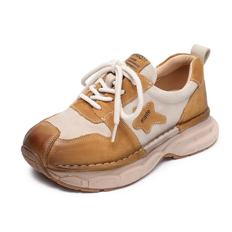 미국 자연 색상 2025 봄 새로운 복고풍 색상 일치 첫 번째 레이어 가죽 신발 스포츠 레저 높이 가죽 여성 신발