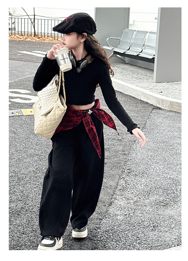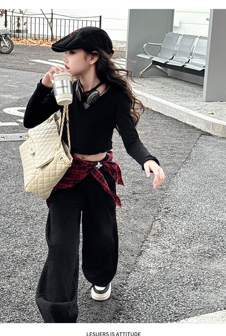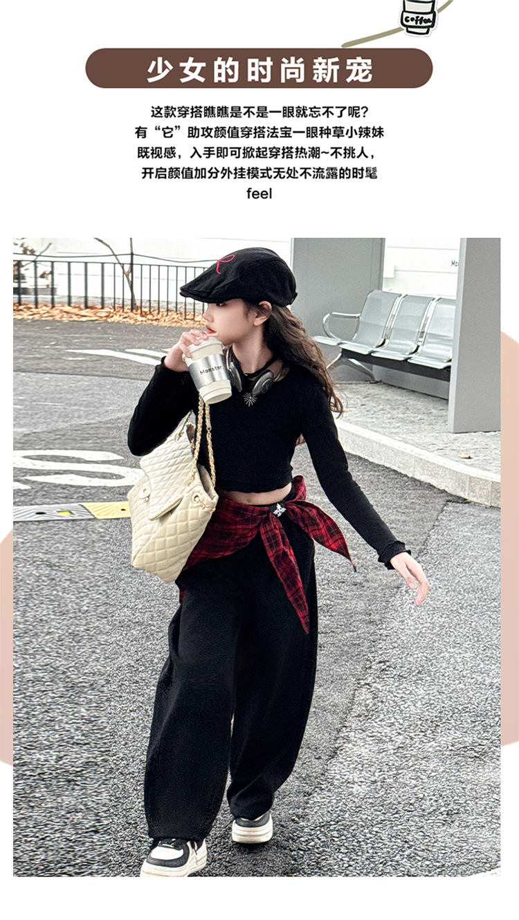 소녀 2025 새 봄과 가을 올해 인기 폭발 봄 옷 큰 어린이 높은 감각 힙합 바지 투피스 세트 세트스토어 가기