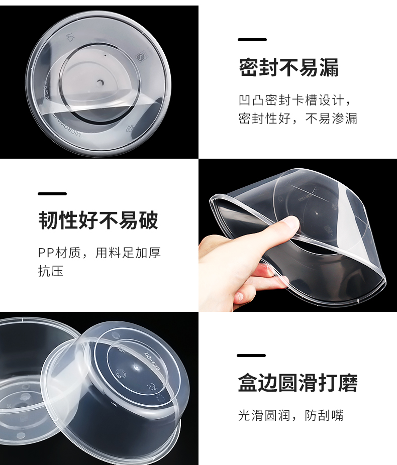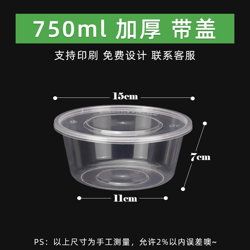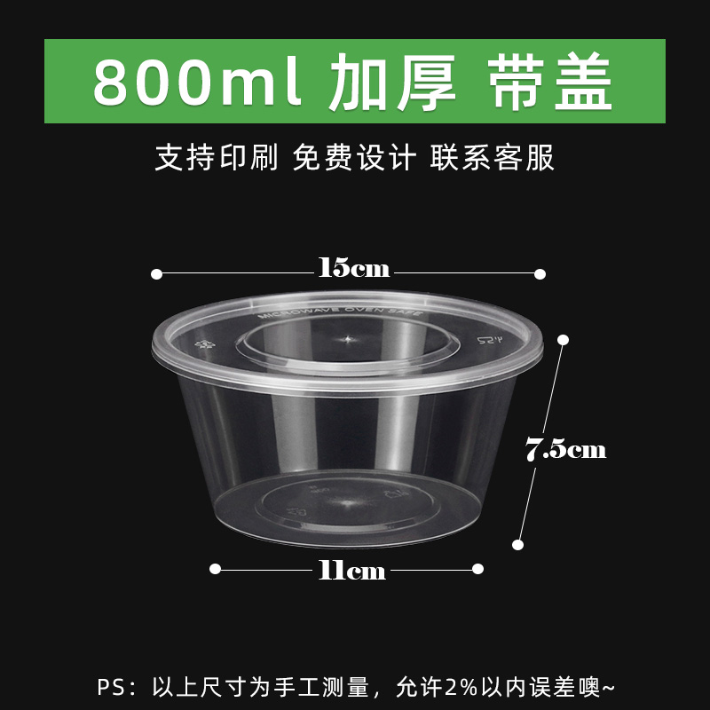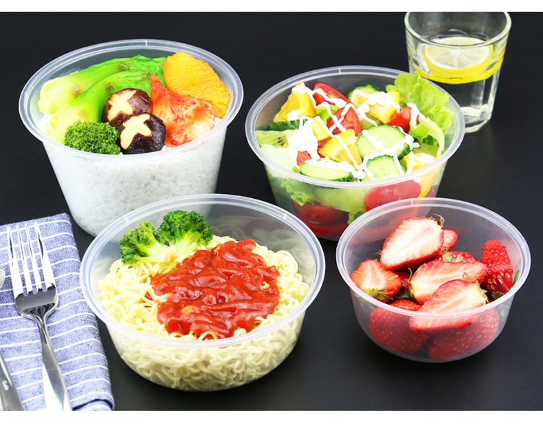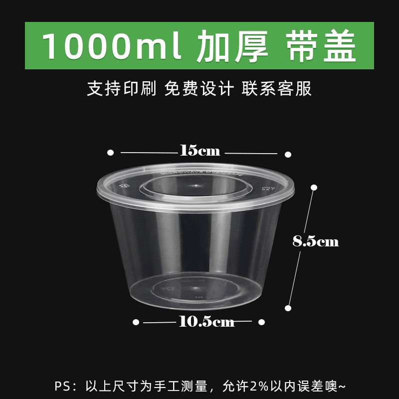 1000ML 라운드 일회용 도시락 투명 테이크 아웃 패키지 상자 두꺼운 플라스틱 패스트 푸드 도시락 수프 바이한 체