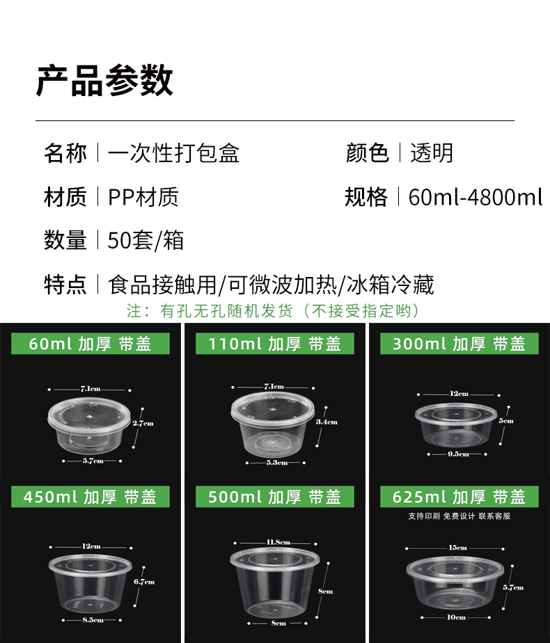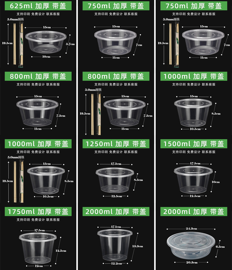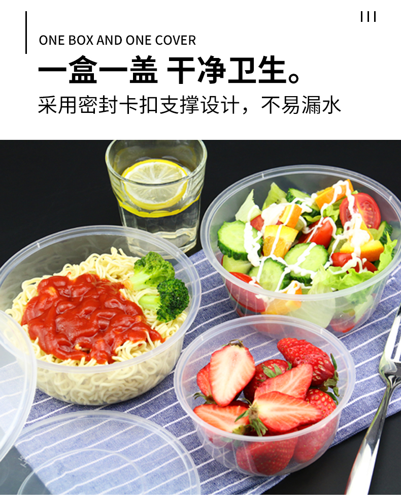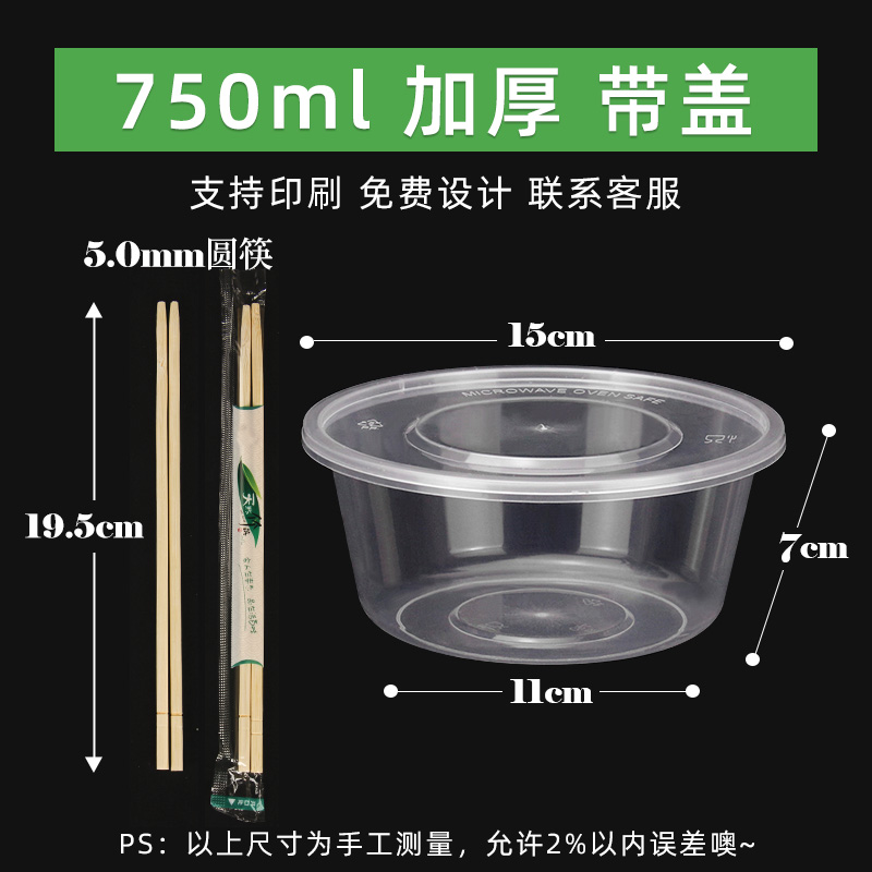• 원형 750ml 투명 [뚜껑 포함 50세트] + 젓가락 50쌍♜♜