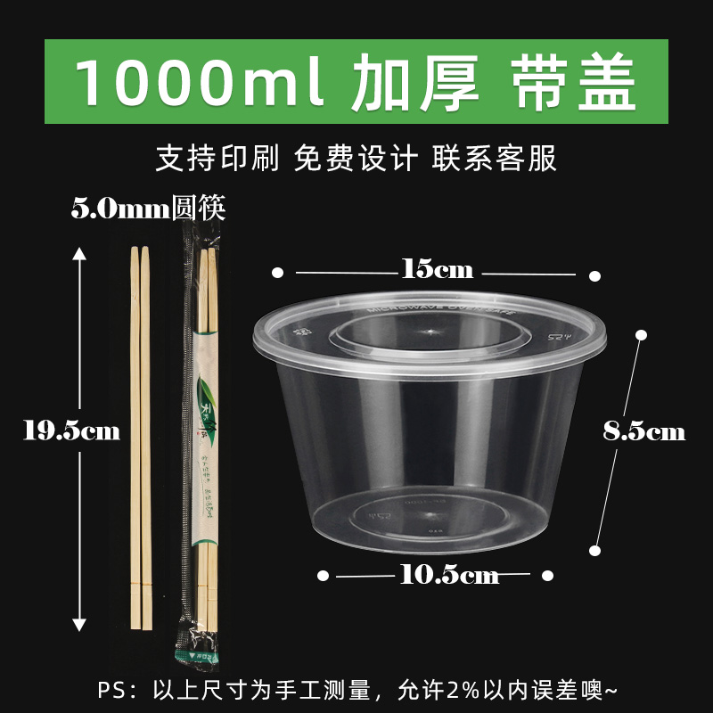 • 원형 1000ml 투명 [뚜껑 포함 50세트] + 젓가락 50쌍♜♜
