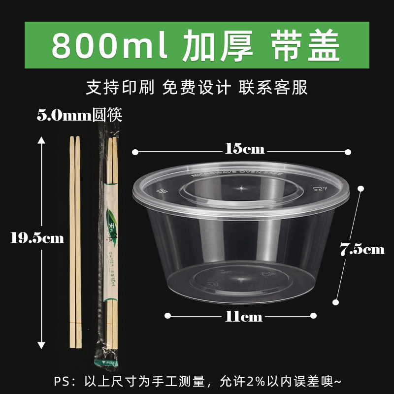 • 원형 800ml 투명 [뚜껑 포함 50세트] + 젓가락 50쌍♜♜