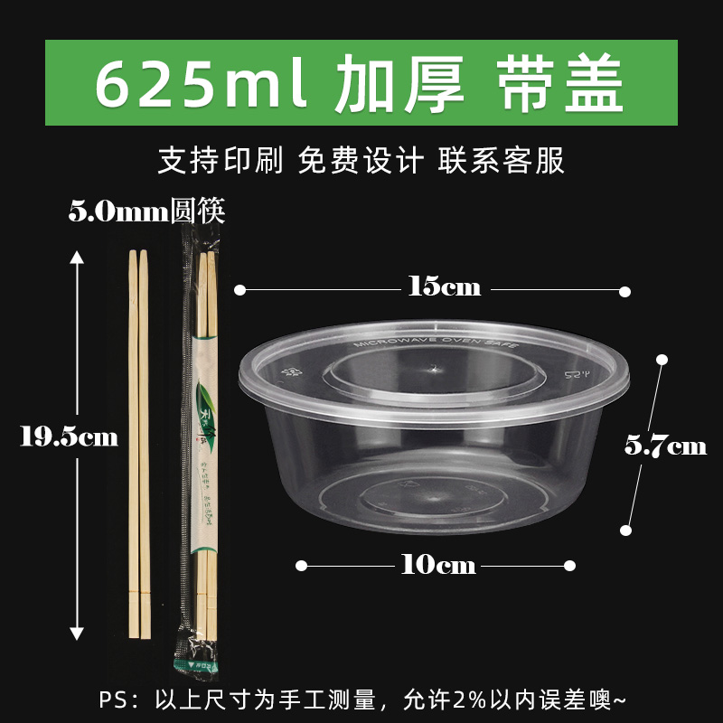 • 원형 625ml 투명 [뚜껑 포함 50세트] + 젓가락 50쌍♜♜