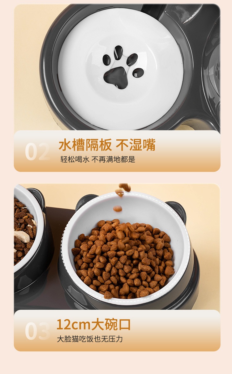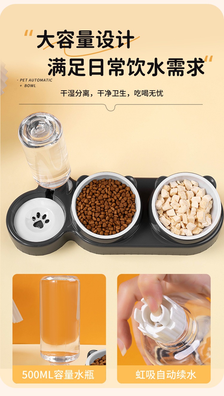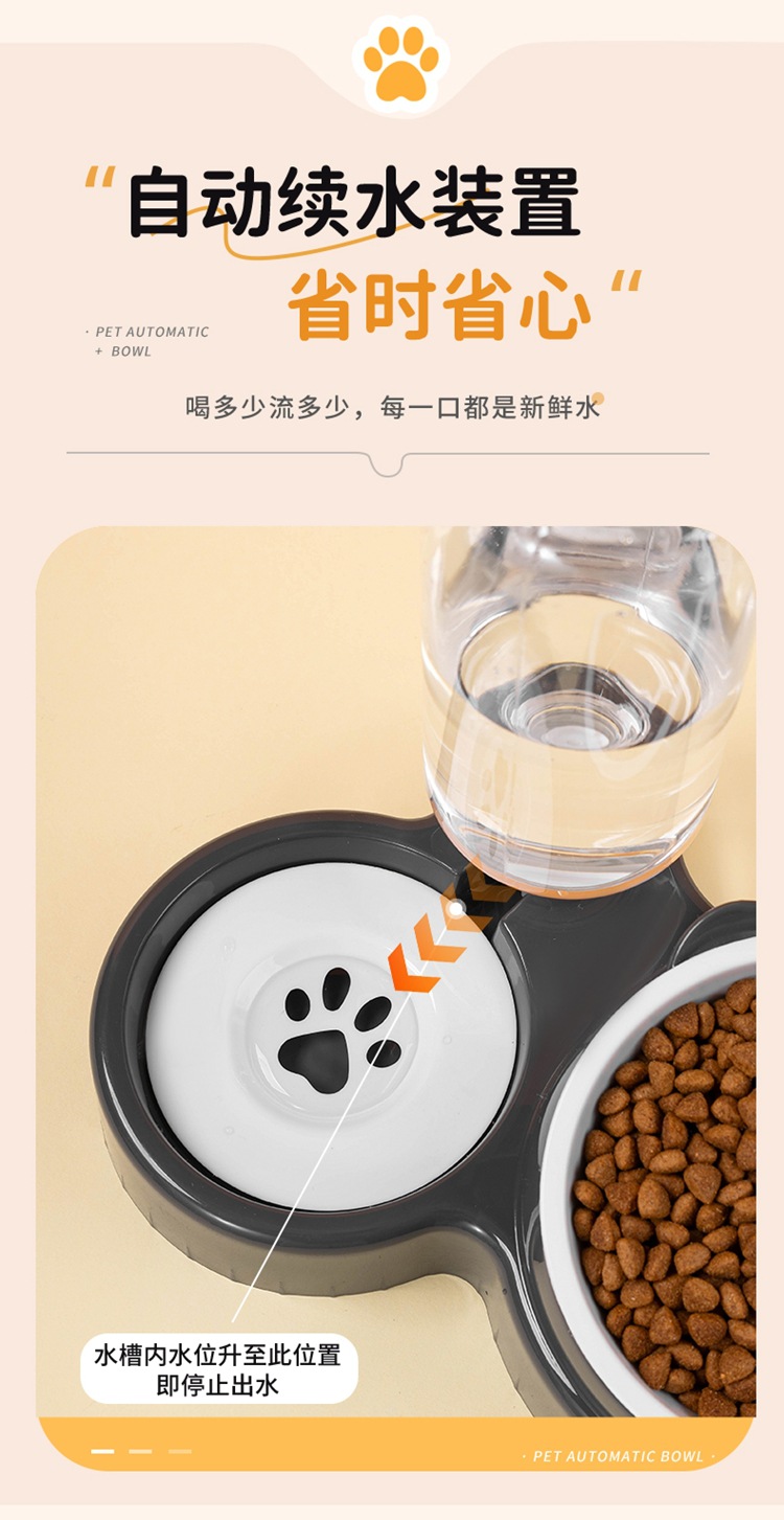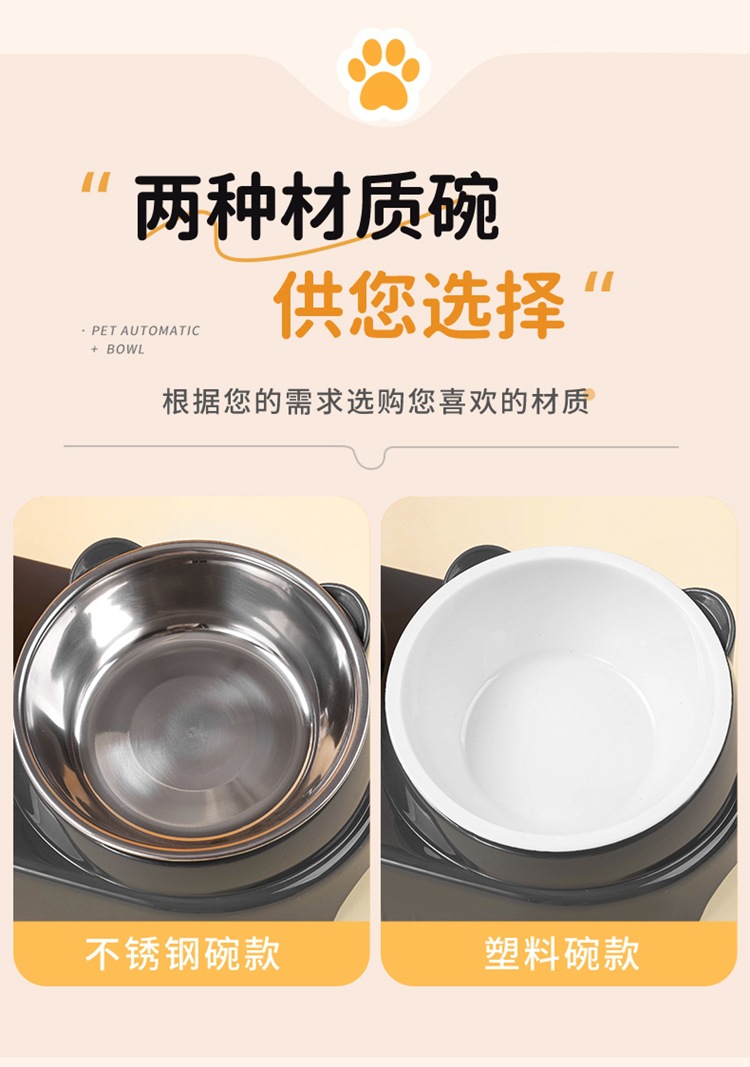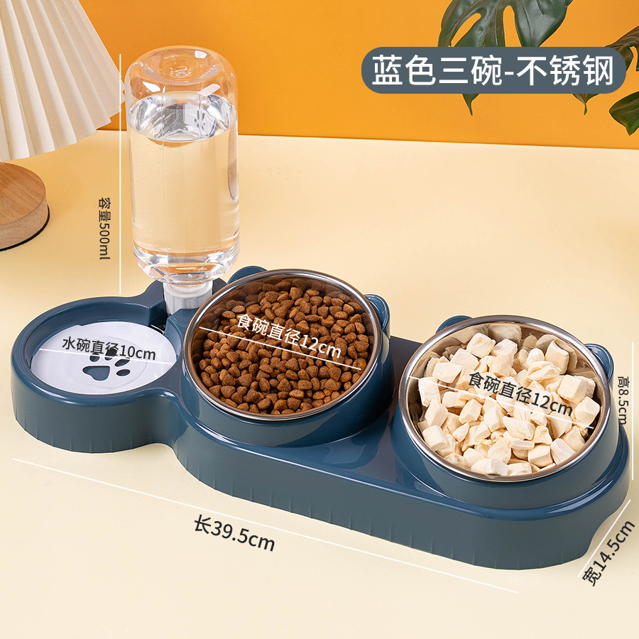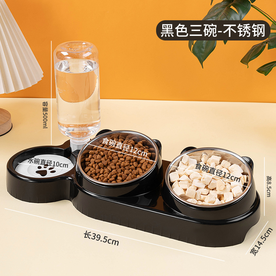 고양이 그릇 비스듬한 입 그릇 고양이 쌀 분지 더블 그릇 스테인리스 스틸 자동 물 리필 애완 동물 그릇 2-in -1 식수 피더