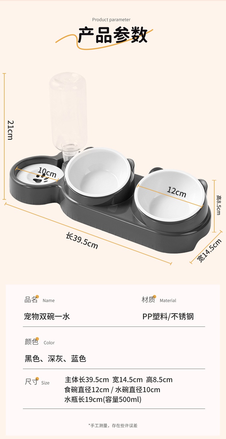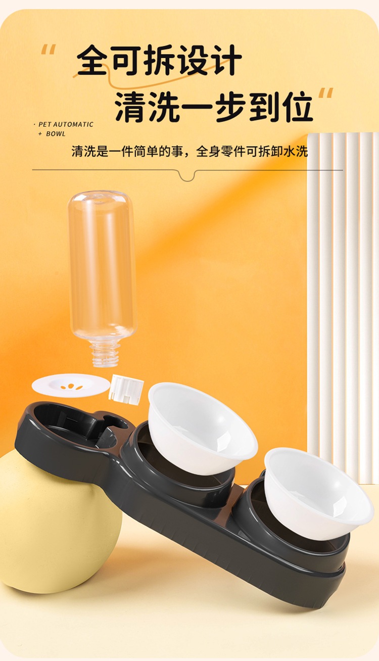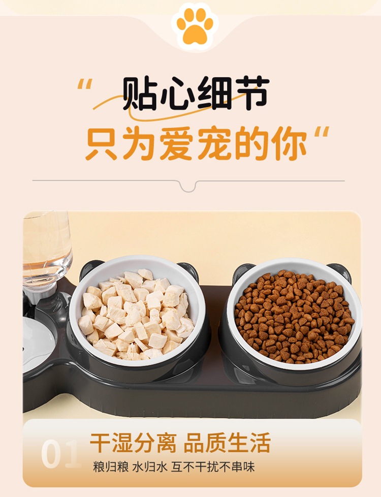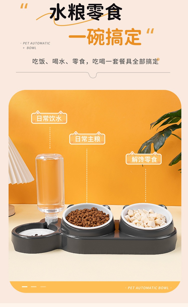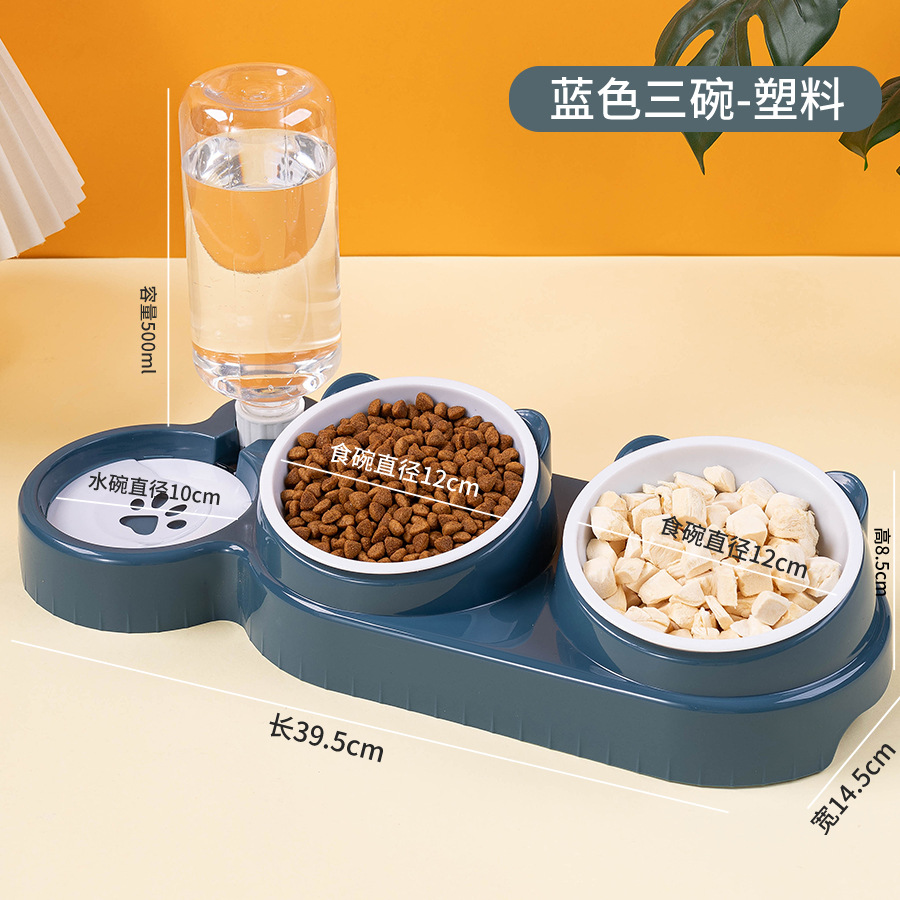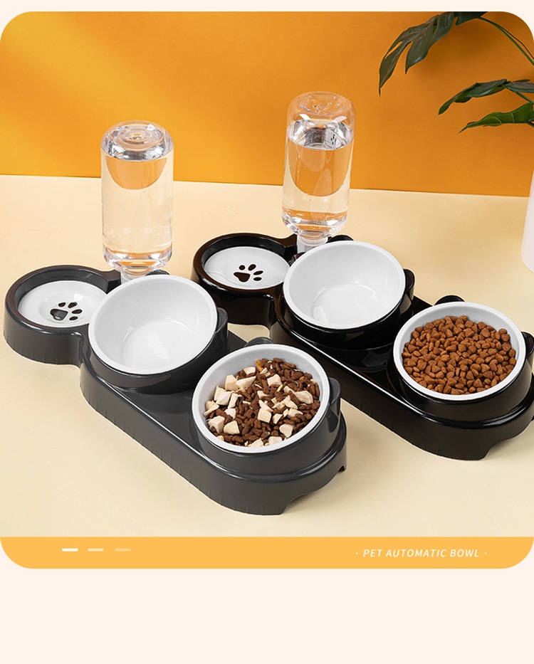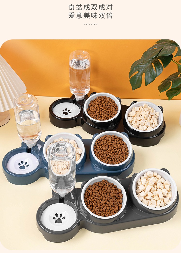 고양이 그릇 비스듬한 입 그릇 고양이 쌀 분지 더블 그릇 스테인리스 스틸 자동 물 리필 애완 동물 그릇 2-in -1 식수 피더