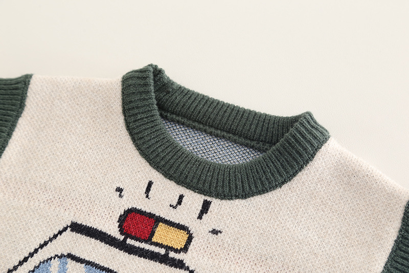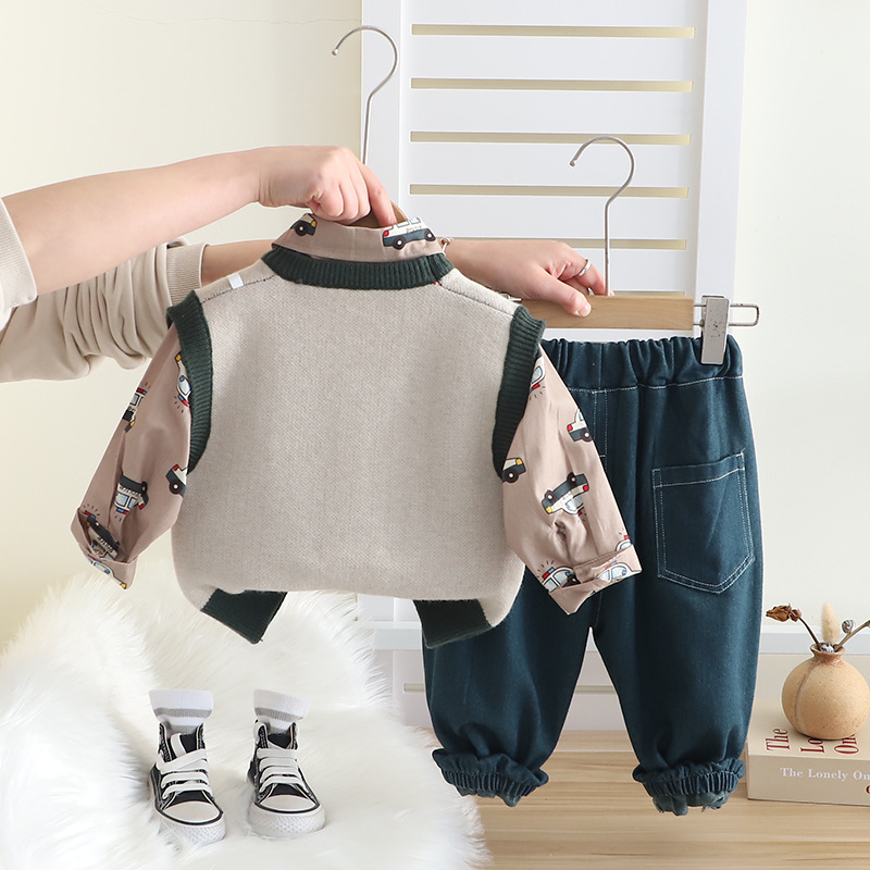 소년의 봄 세트 2025 봄 새로운 모리 어린이 만화 자동차 스웨터 조끼 3 조각 유행스토어 가기
