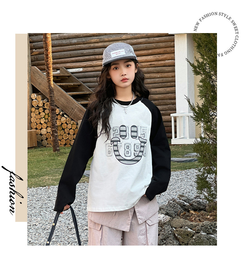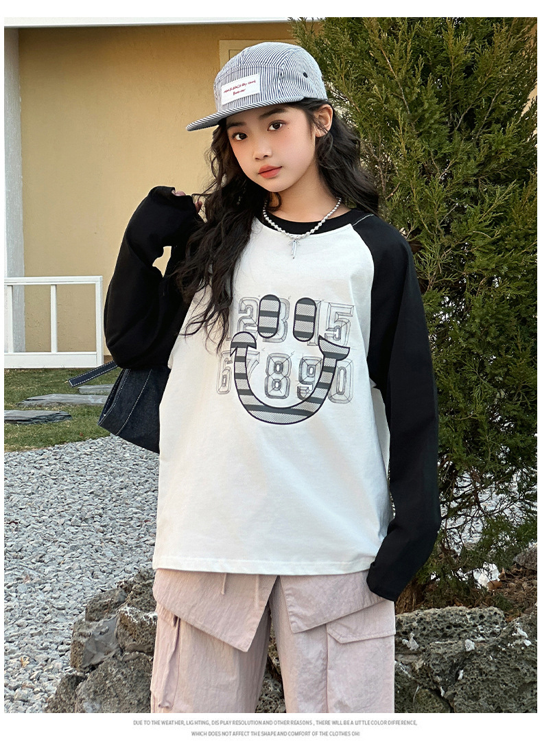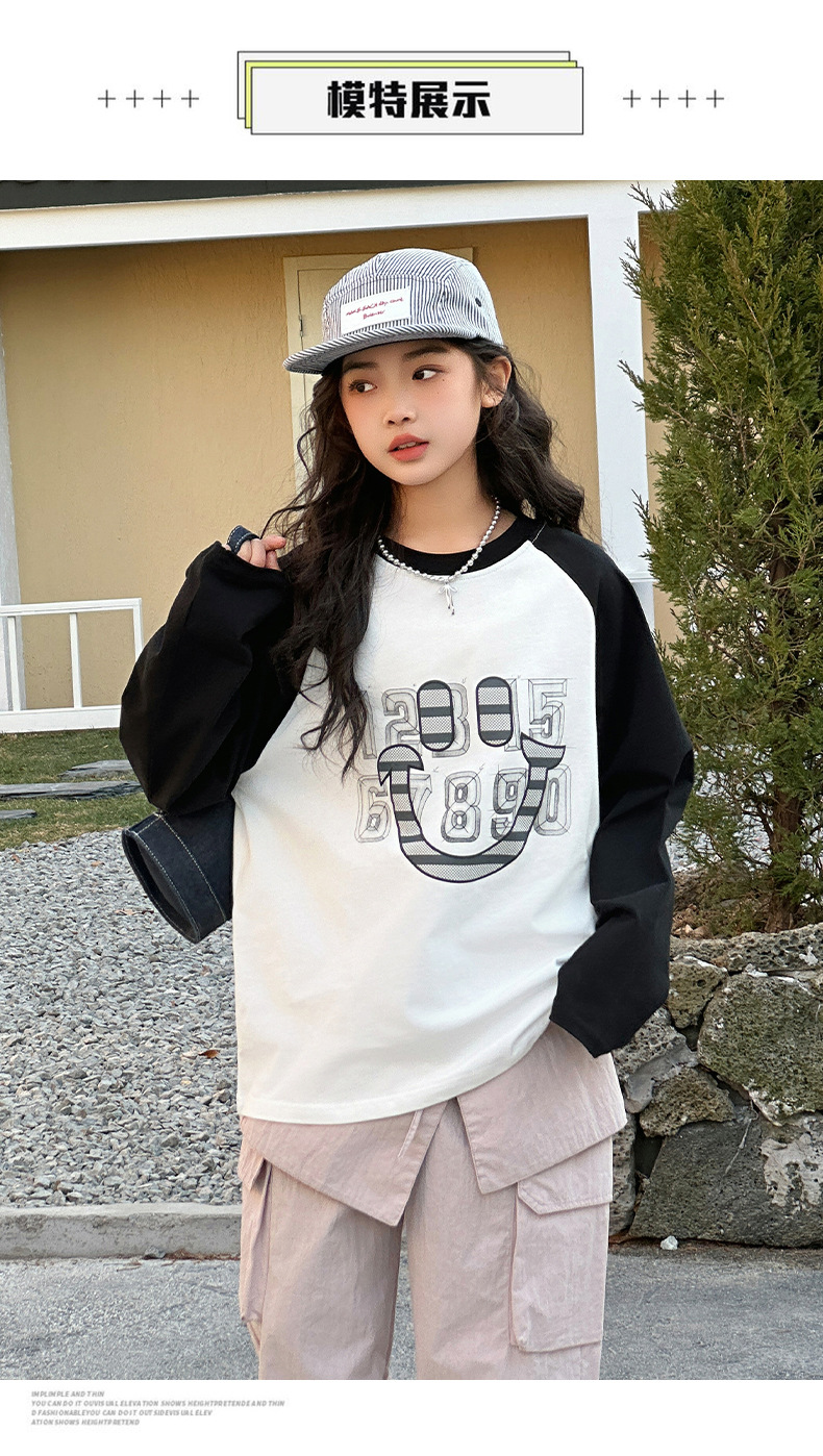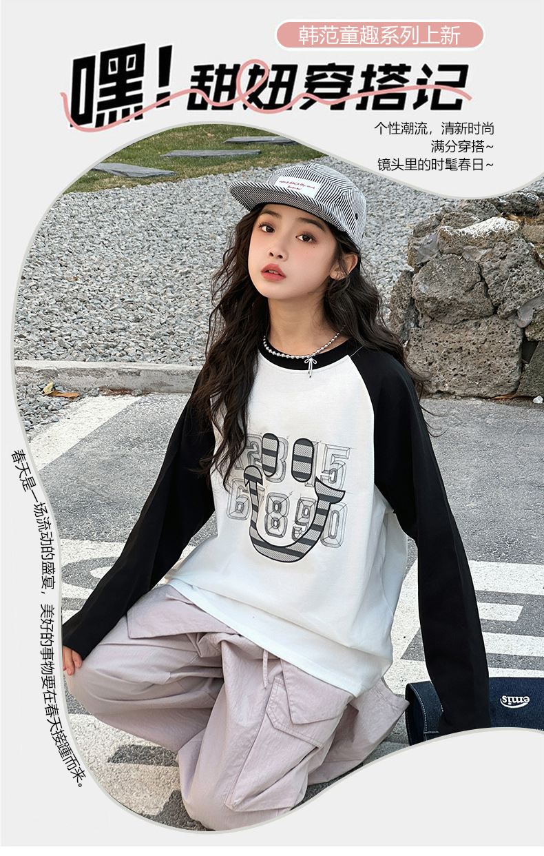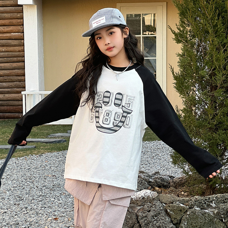 중학생 여중학생 중학생 어린이 순면베이스 셔츠 봄과 가을 긴 소매 티셔츠 느슨한 플러스 사이즈 라글란베이스 셔츠