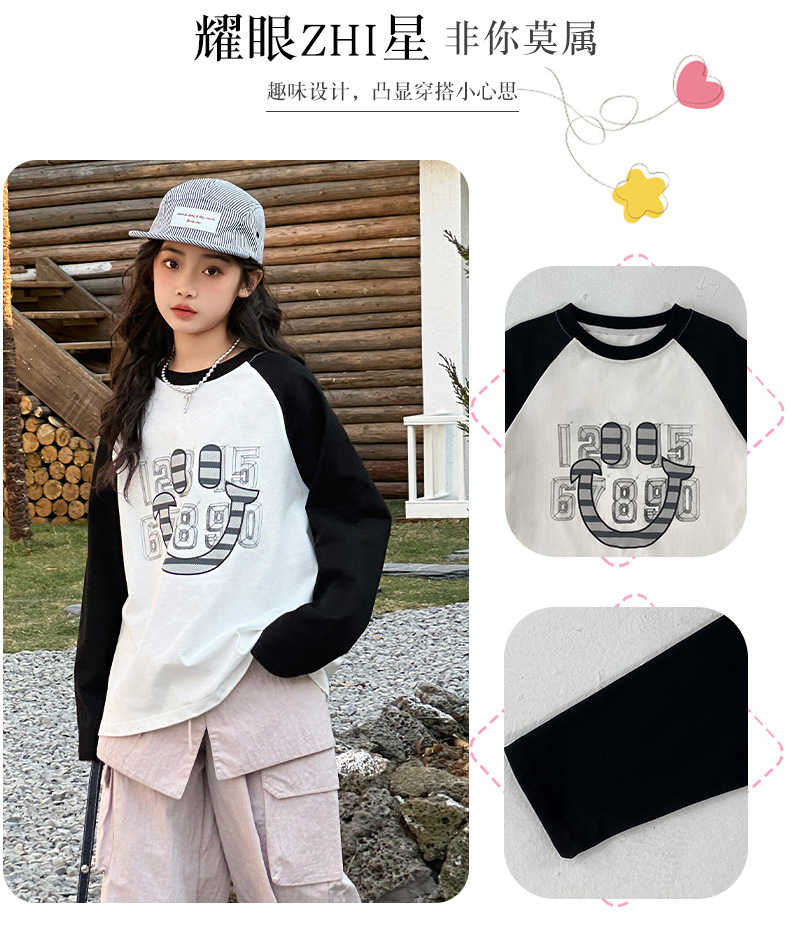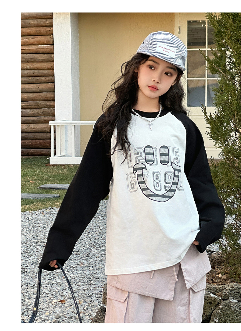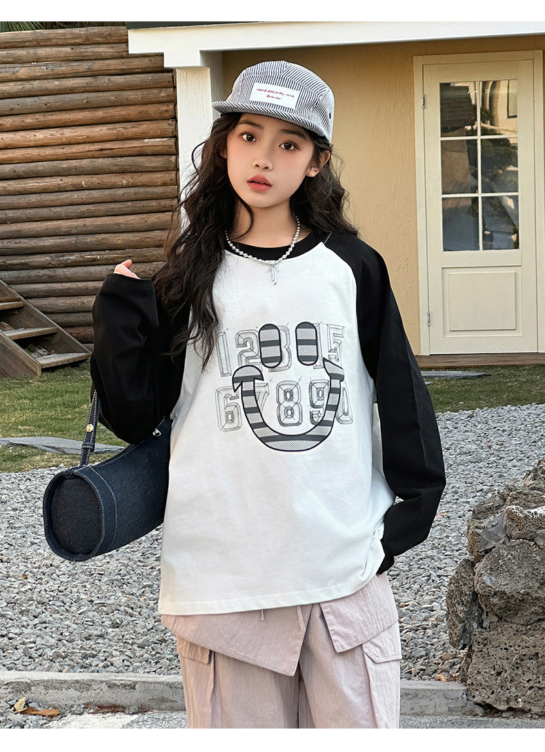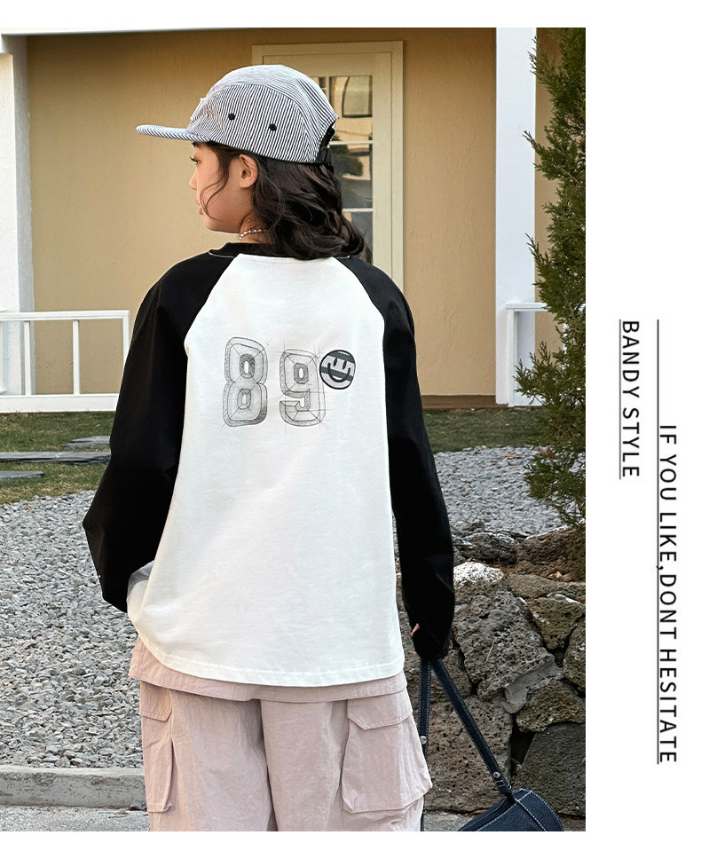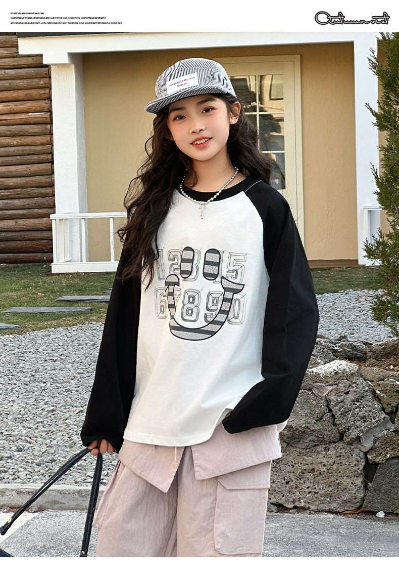 중학생 여중학생 중학생 어린이 순면베이스 셔츠 봄과 가을 긴 소매 티셔츠 느슨한 플러스 사이즈 라글란베이스 셔츠