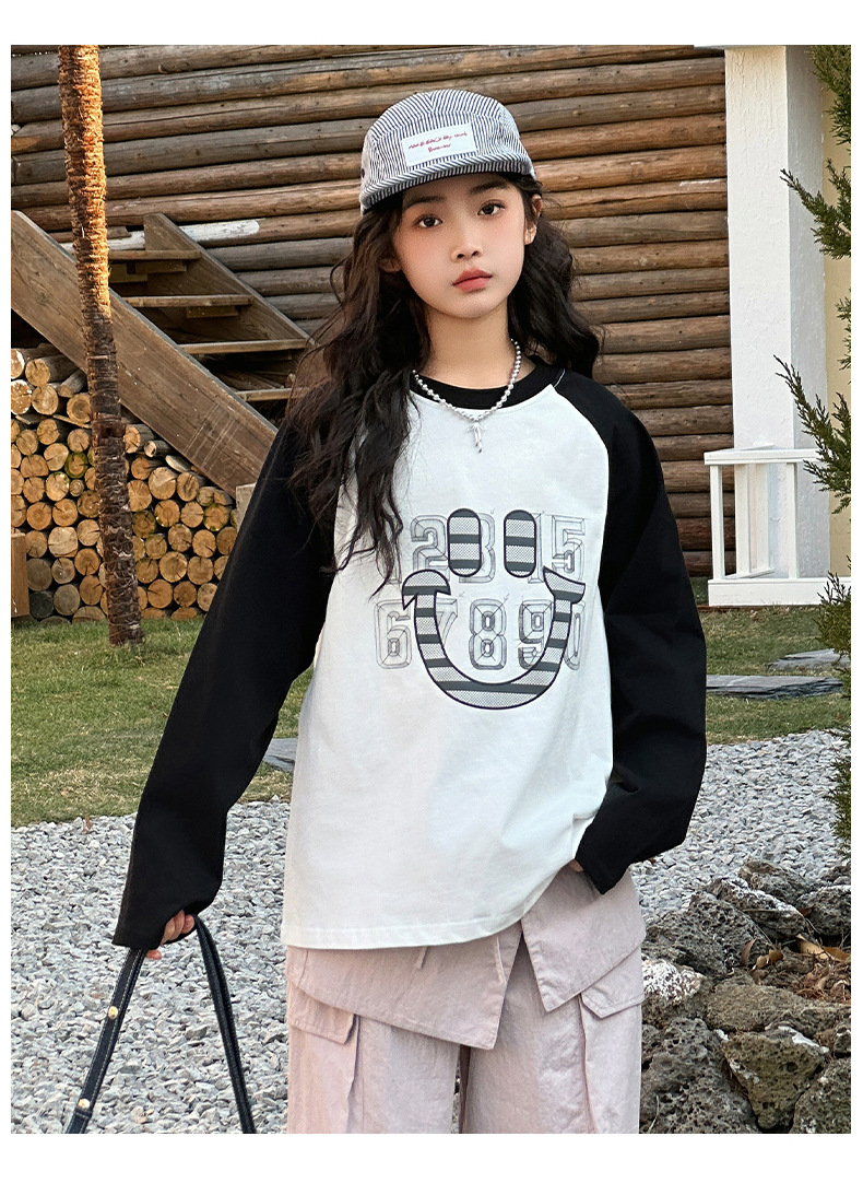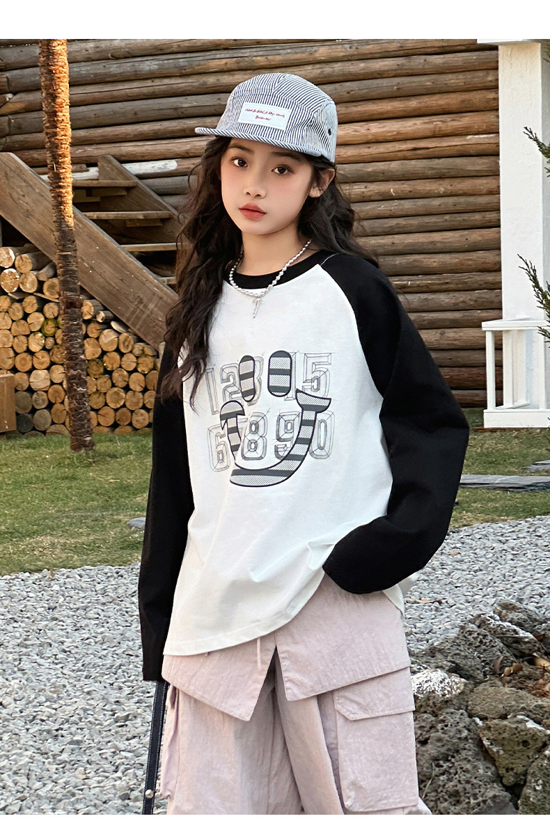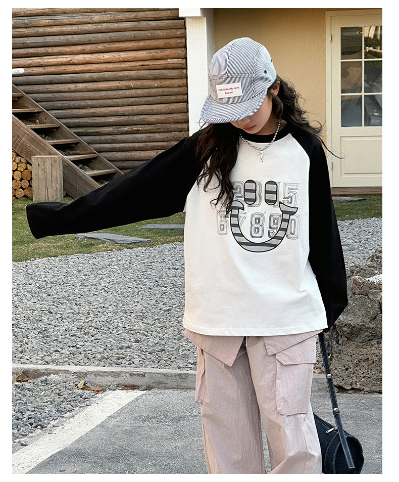 중학생 여중학생 중학생 어린이 순면베이스 셔츠 봄과 가을 긴 소매 티셔츠 느슨한 플러스 사이즈 라글란베이스 셔츠스토어 가기