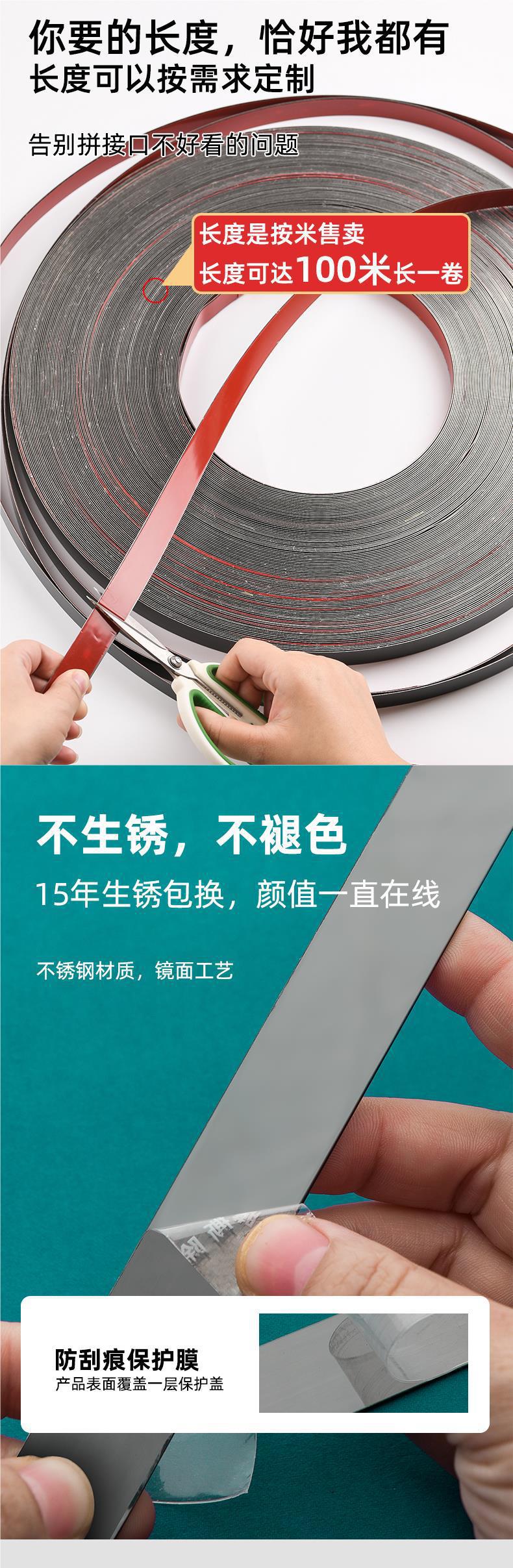 티타늄 합금 장식 스트립 블랙 티타늄 스테인레스 스틸 라인 자체 접착 평면 석고 라인 천장 TV 배경 벽 프레임