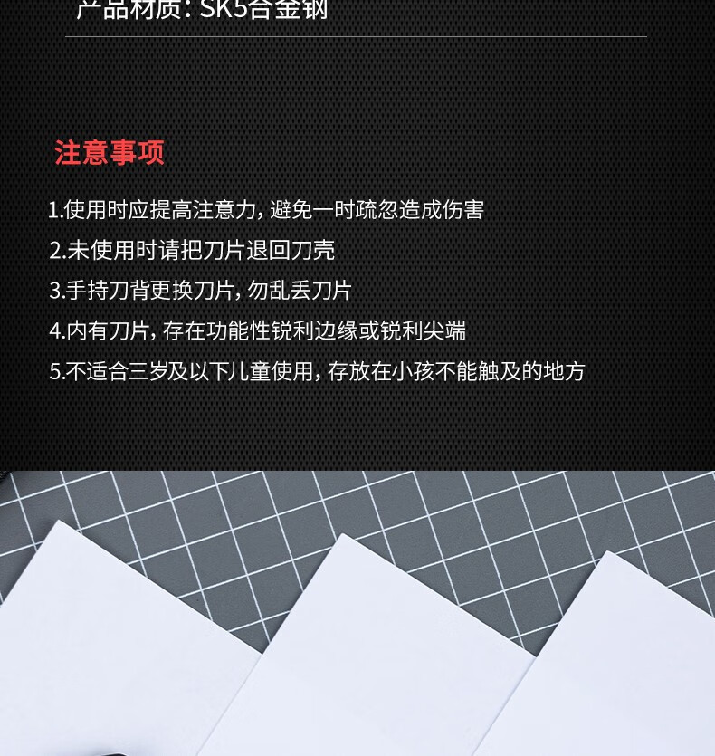 델리 아트 나이프 블레이드 종이 커터 벽지 칼 도구 칼 작은 두꺼운 검은 블레이드 30도 도매 검은 블레이드