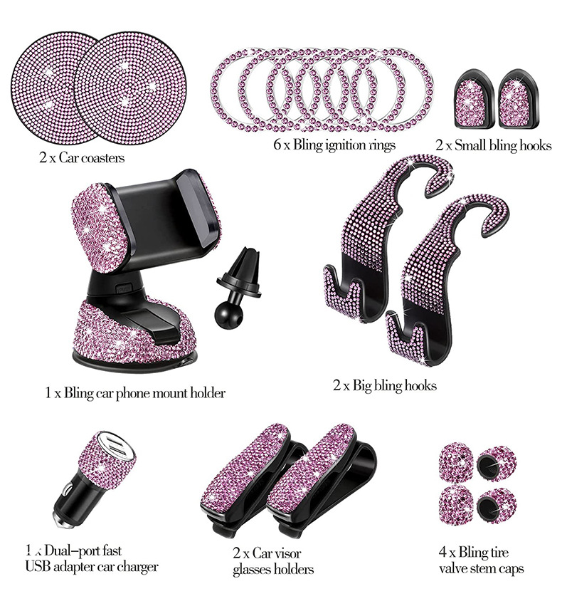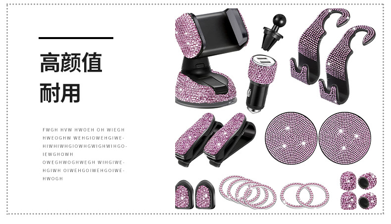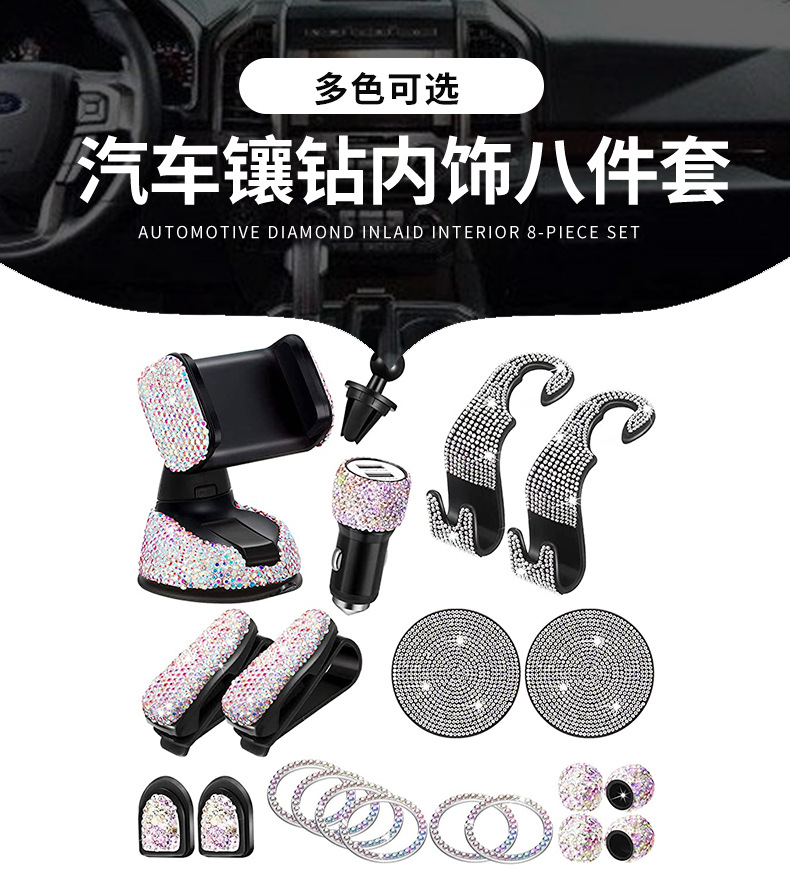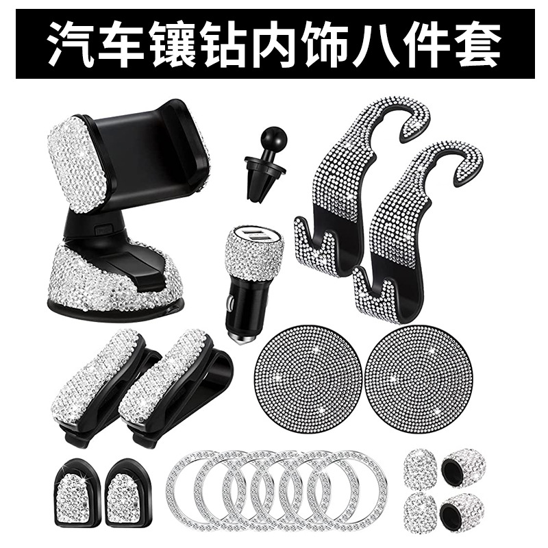 크로스보더 자동차 인테리어 8피스 다이아몬드가 박힌 자동차 휴대폰 홀더 장식품 센터 콘솔 코스터 자동차 펜던트 도매스토어 가기