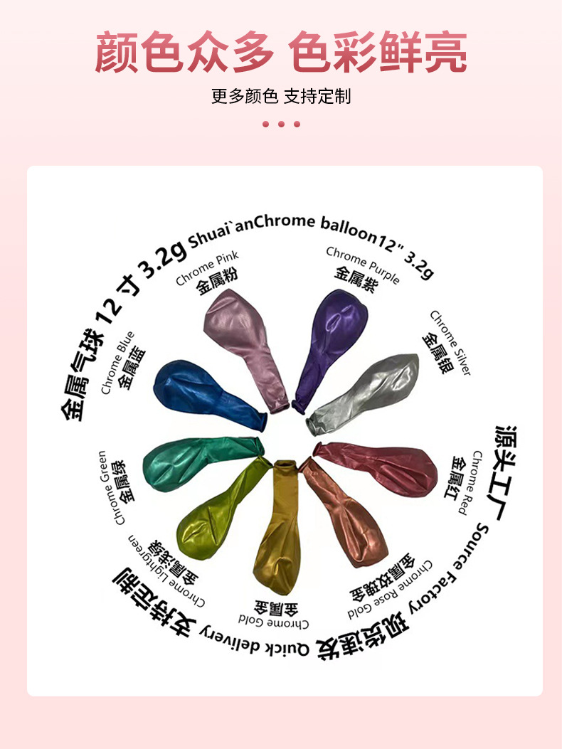 12 인치 3.2g 금속 풍선 두꺼운 웨딩 룸 생일 파티 파티 장면 레이아웃 라운드 크롬 풍선