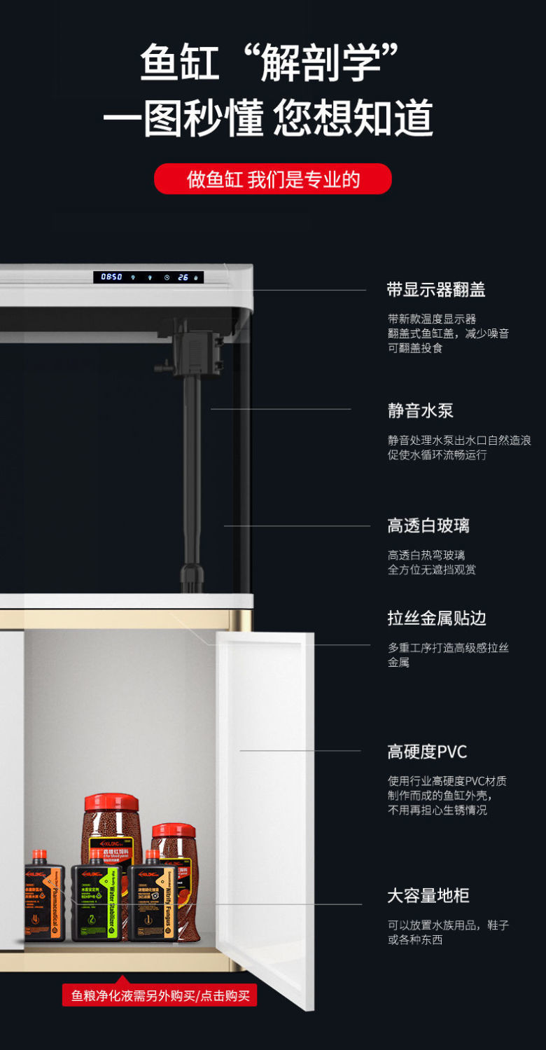 거실 어항 소형 가정용 수족관 바닥 대형 생태 게으른 물없는 유리 금붕어 탱크 캐비닛스토어 가기